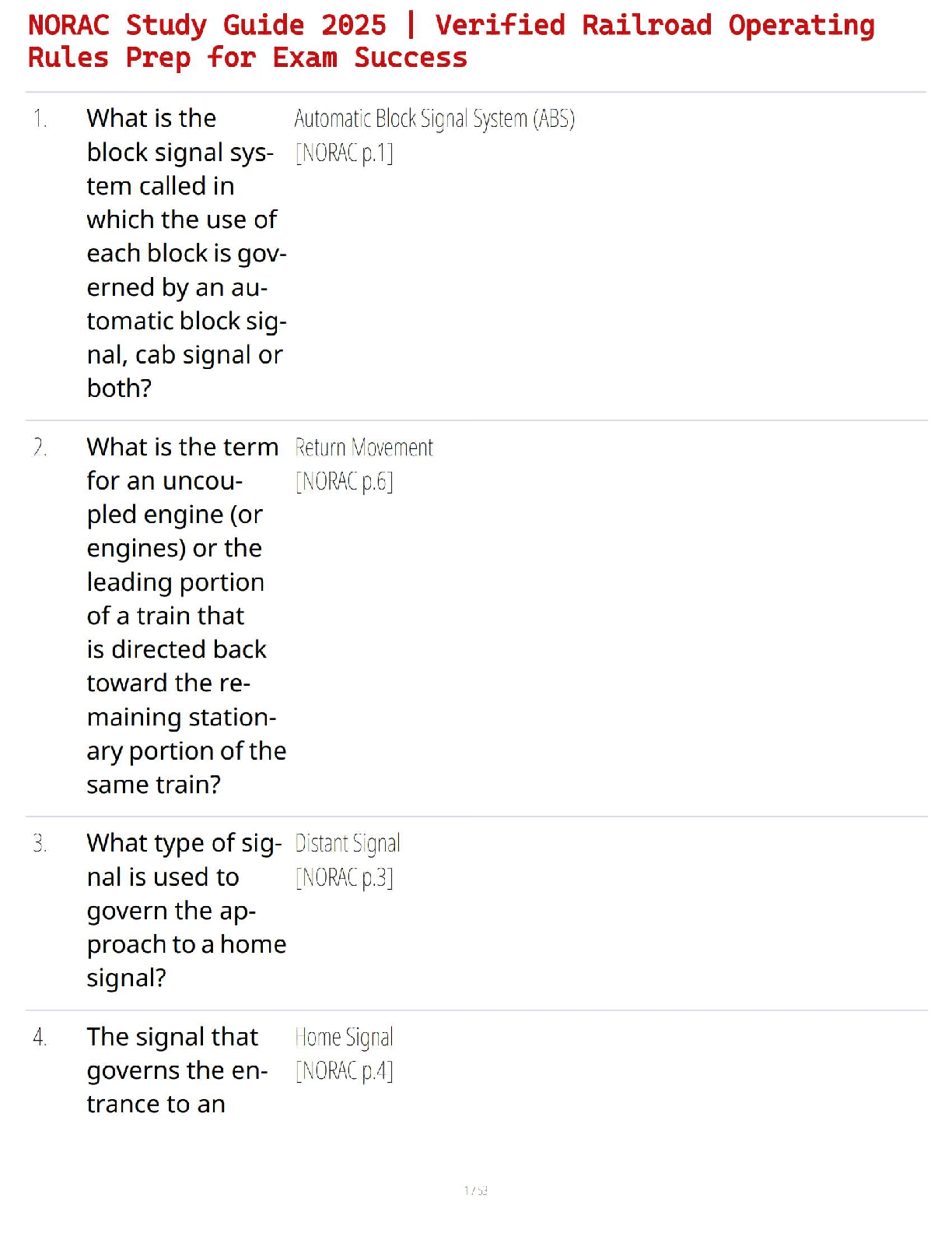 Mechanical Engineering > STUDY GUIDE > NORAC Study Guide 2025 | Verified Railroad Operating Rules Prep for Exam Success (All)