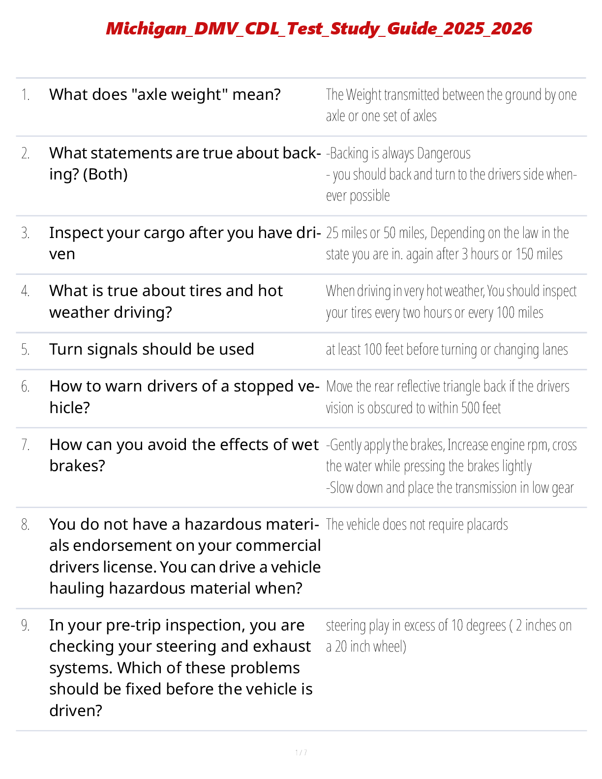 Mechanical Engineering > STUDY GUIDE > Michigan DMV CDL Test Study Guide 2025 (All)