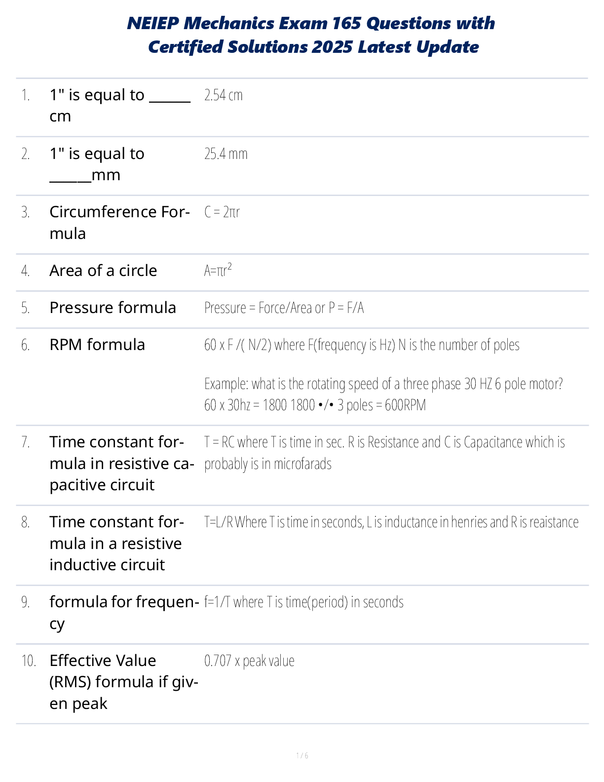 Mechanical Engineering > STUDY GUIDE > NEIEP Mechanics Exam: 165 Questions with Certified Solutions - 2025 Latest Update (All)