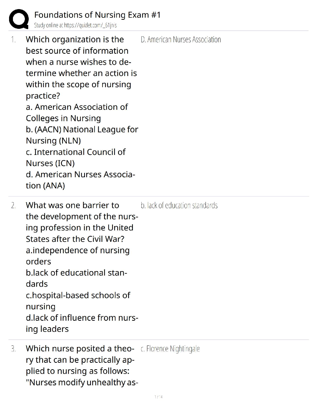 nursing fundamentals > ANSWERS AND COMMENTARIES > Taylor Fundamentals of Nursing, Ninth Edition - Chapter one quiz (All)
