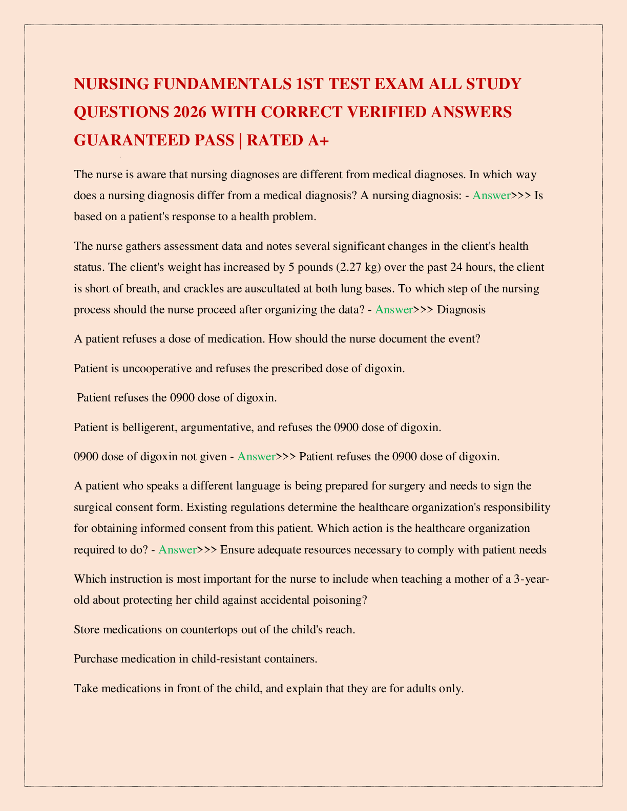nursing fundamentals > EXAMs > NURSING FUNDAMENTALS 1ST TEST EXAM ALL STUDY QUESTIONS 2026 WITH CORRECT VERIFIED ANSWERS GUARANTEED PASS | RATED A+ (All)