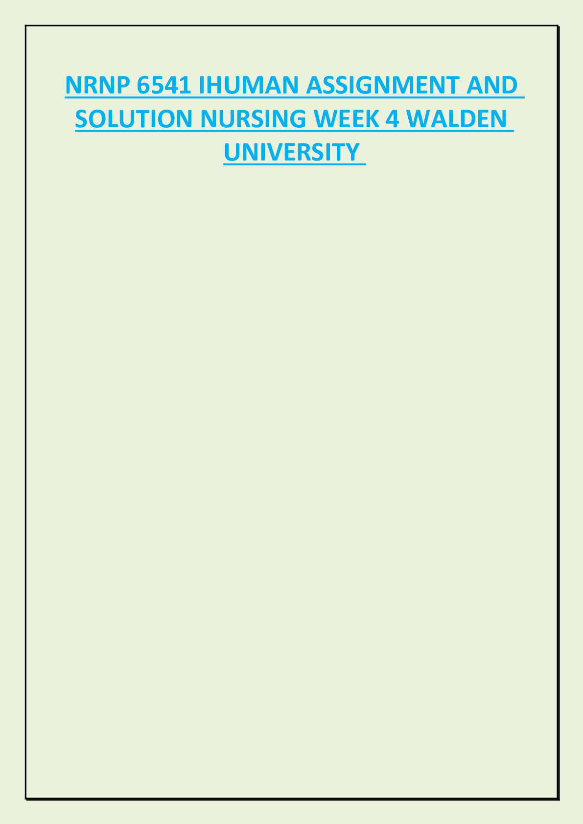 Ihuman case study > EXAM > NRNP 6541 IHUMAN ASSIGNMENT AND SOLUTION NURSING WEEK 4 WALDEN UNIVERSITY (All)