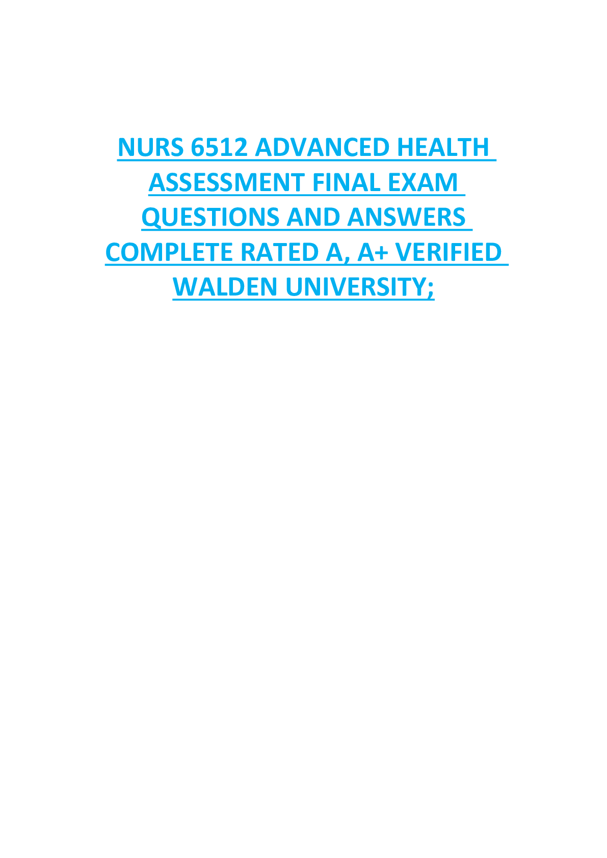 Ihuman case study > EXAM > NURS 6512 ADVANCED HEALTH ASSESSMENT 13-YEAR-OLD PATIENT WITH TESTICULAR PAIN WALDEN UNIVERSITY (All)