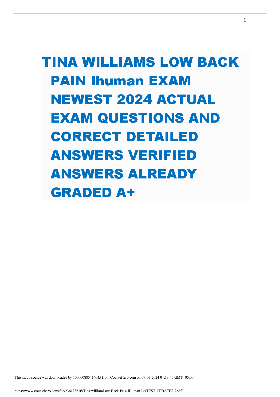 Ihuman case study > EXAM > 1 TINA WILLIAMS LOW BACK PAIN Ihuman EXAM NEWEST 2025/2026 ACTUAL EXAM QUESTIONS AND CORRECT DETAILED ANSWERS VERIFIED ANSWERS ALREADY GRADED A+ (All)