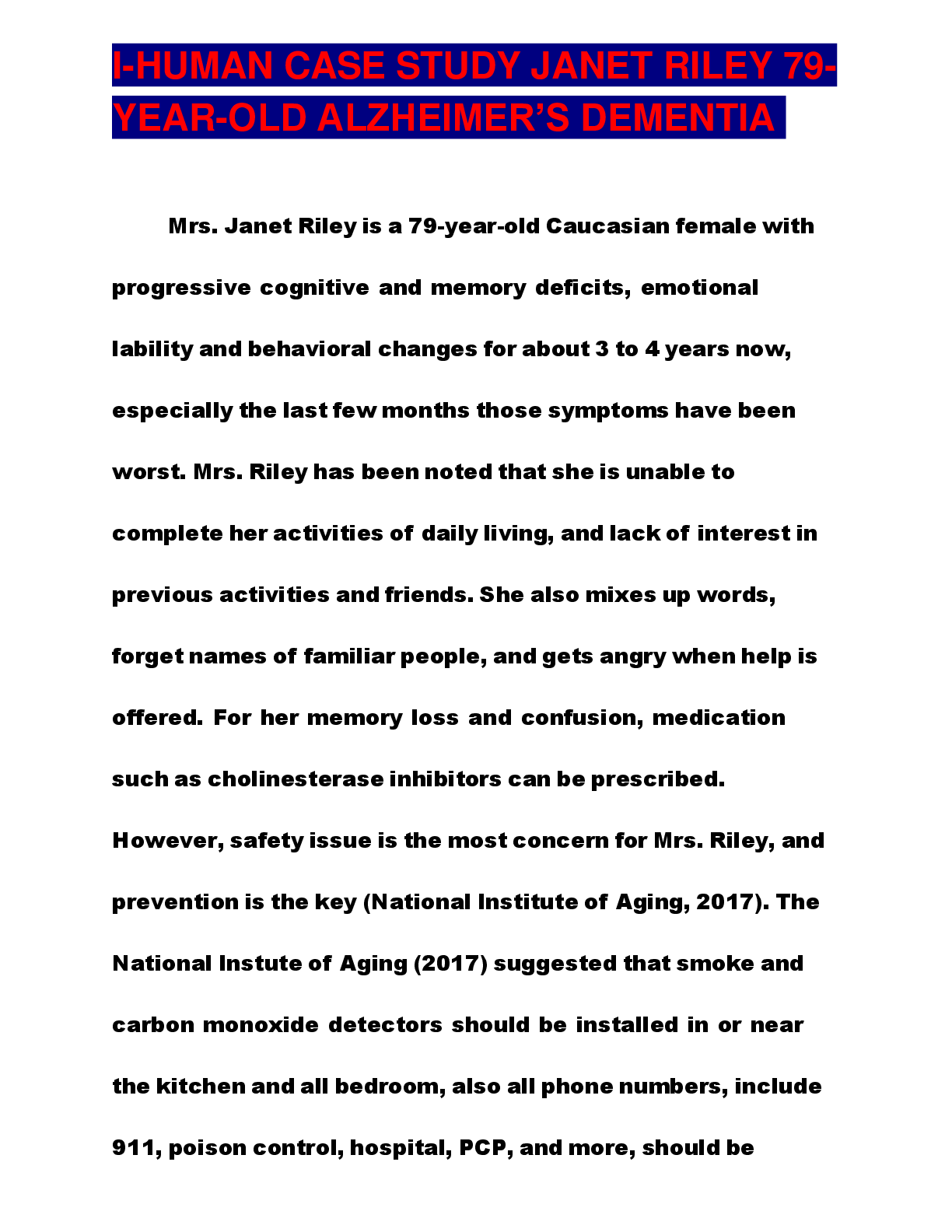 Ihuman case study > CASE STUDY > I-HUMAN CASE STUDY JANET RILEY 79-YEAR-OLD ALZHEIMER’S DEMENTIA (All)
