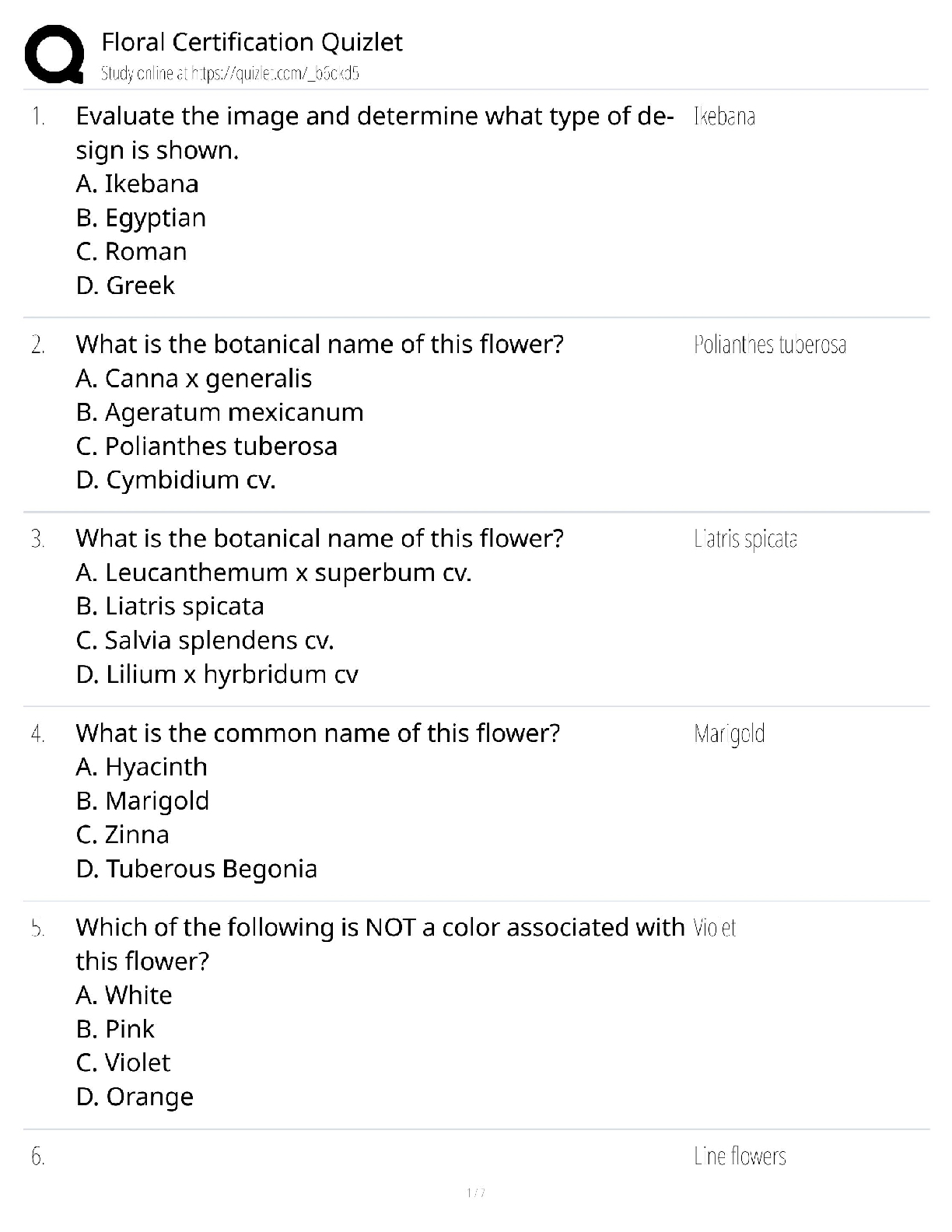 Horticulture > QUESTIONS & ANSWERS > Floral Certification Exam / Plant & Flower Identification Test / 2026 Update / Practice Test & Study Guide (All)