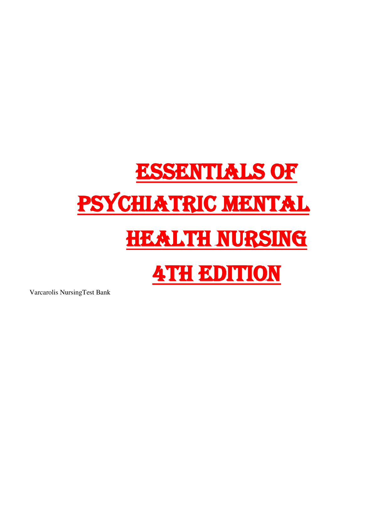 PSYCHIATRIC MENTAL HEALTH NURSING > TEST BANKS > Test Bank for Essentials of Psychiatric Mental 4th Edition Vaccarolis (All)