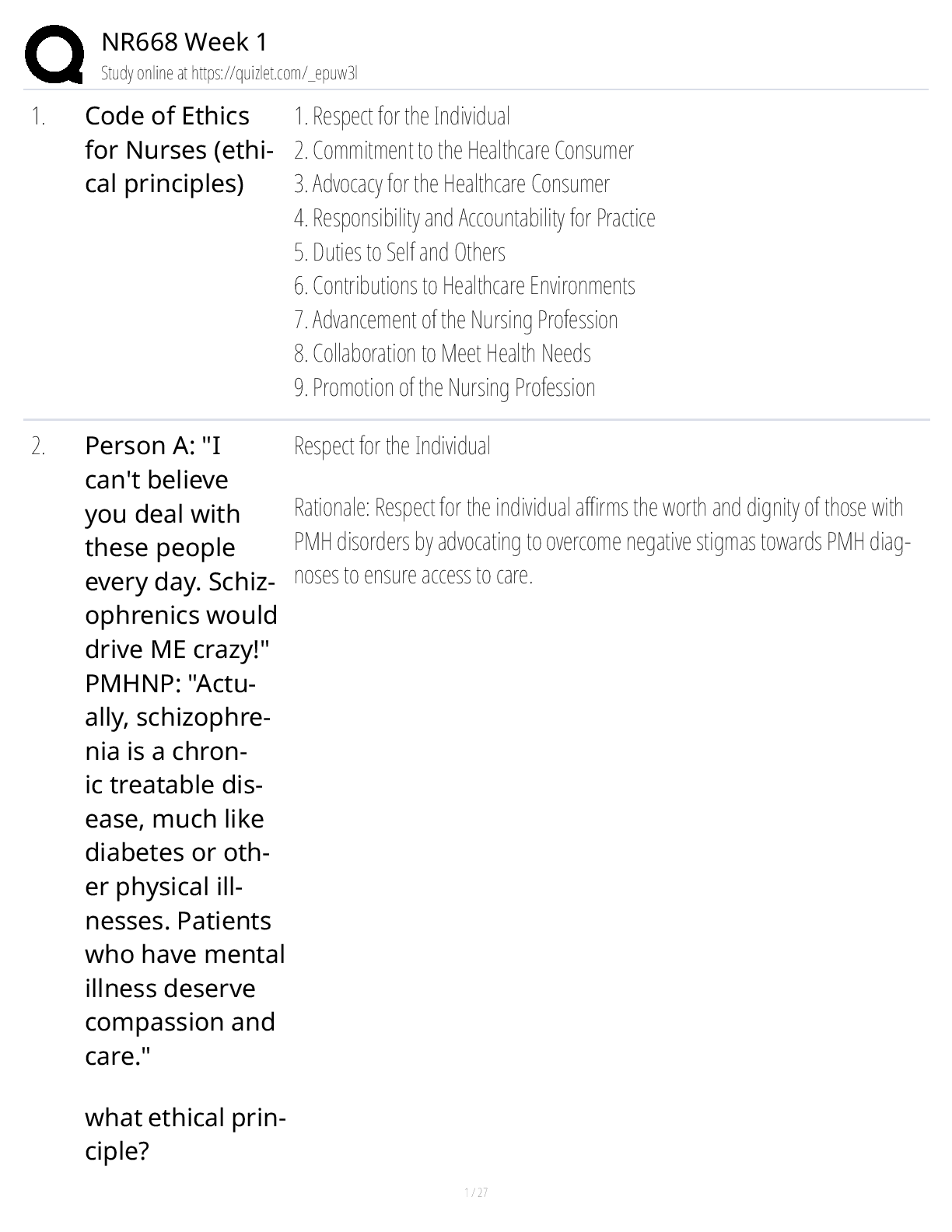 PSYCHIATRIC MENTAL HEALTH NURSING > STUDY GUIDE > NR668 Week 1 Study Guide: Introduction to Psychiatric Mental Health Practice (All)