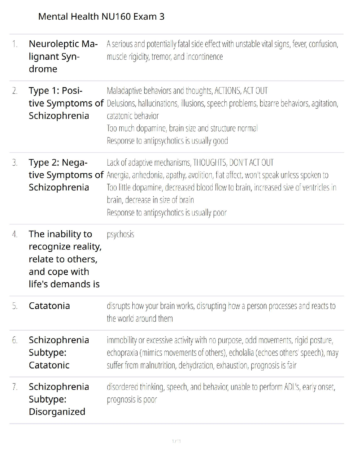 PSYCHIATRIC MENTAL HEALTH NURSING > EXAM > Mental Health NU 160 Exam 3 (All)