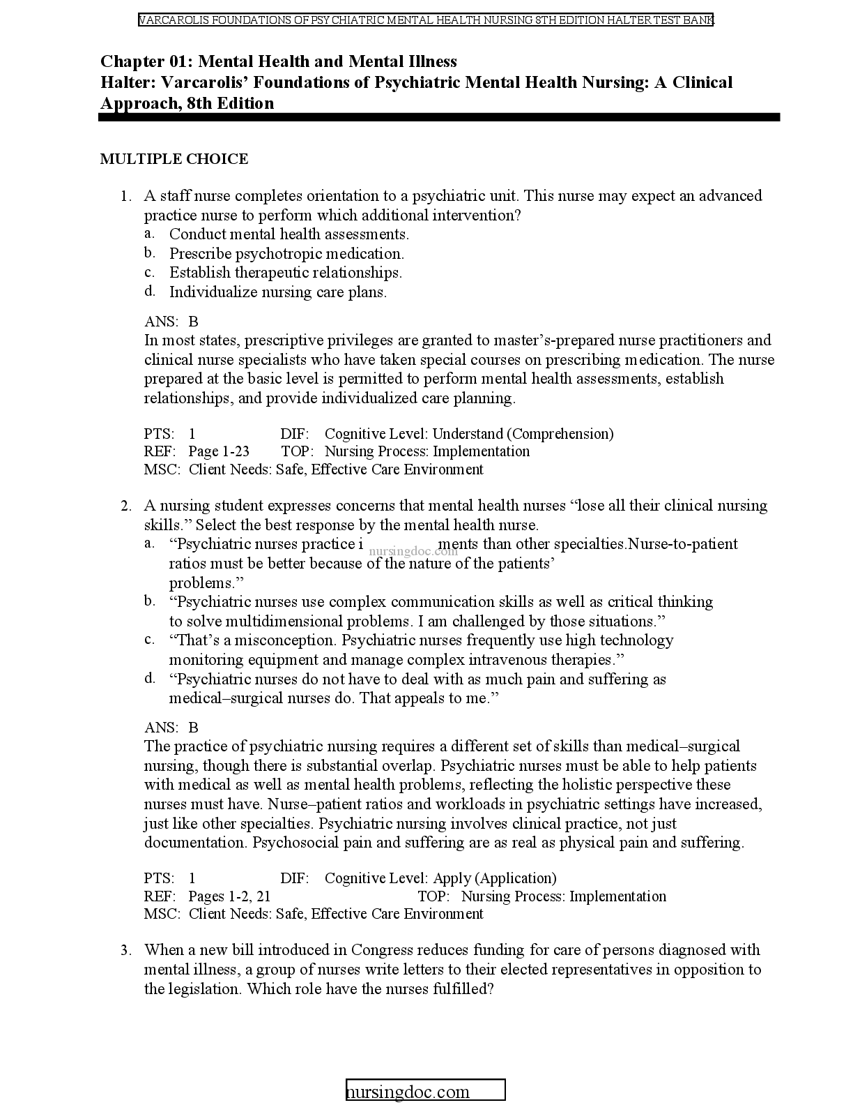PSYCHIATRIC MENTAL HEALTH NURSING > TEST BANKS > Test Bank Varcarolis' Foundations of Psychiatric Mental Health Nursing (All)