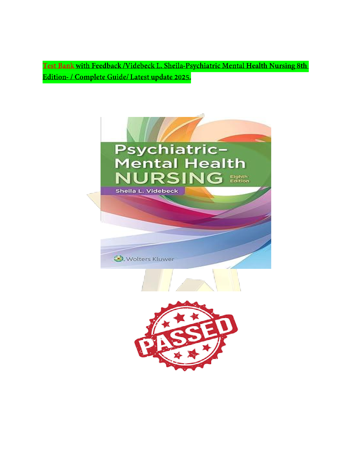 PSYCHIATRIC MENTAL HEALTH NURSING > EXAM > Test Bank for Videbeck L. Sheila-Psychiatric Mental Health Nursing 8th Edition- with Feedback/ Complete Guide latest update 2025. (All)