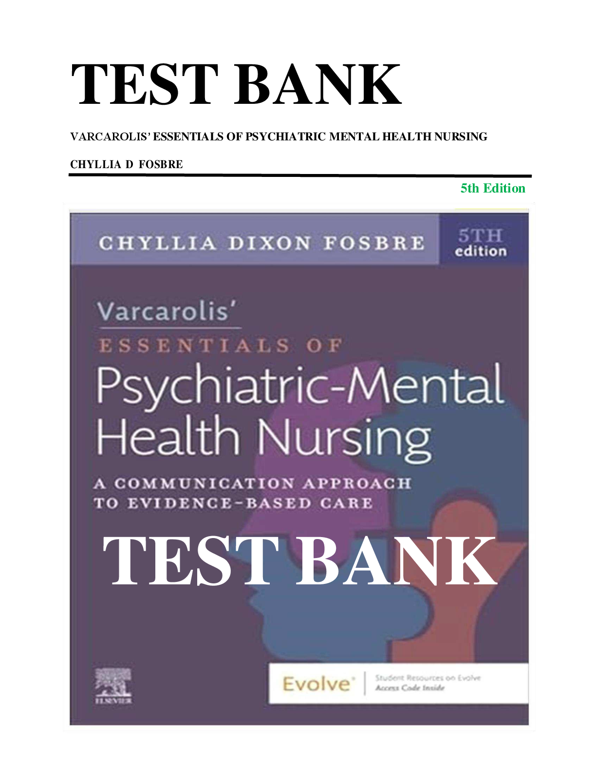 PSYCHIATRIC MENTAL HEALTH NURSING > TEST BANKS > TEST BANK VARCAROLIS’ ESSENTIALS OF PSYCHIATRIC MENTAL HEALTH NURSING CHYLLIA D FOSBRE 5th Edition (All)