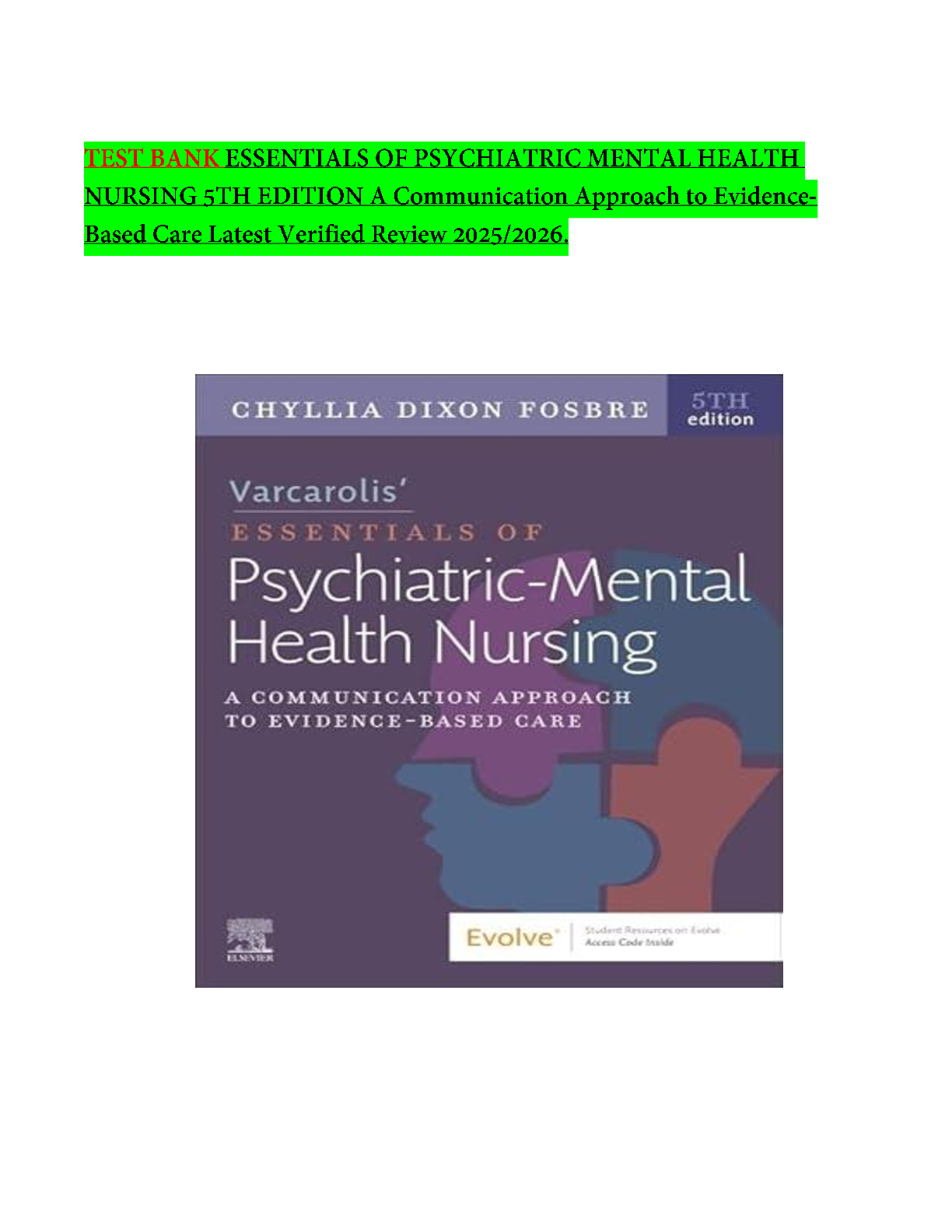 PSYCHIATRIC MENTAL HEALTH NURSING > EXAM > TEST BANK ESSENTIALS OF PSYCHIATRIC MENTAL HEALTH NURSING 5TH EDITION A Communication Approach to Evidence-Based Care Latest Verified Review 2025/2026 (All)