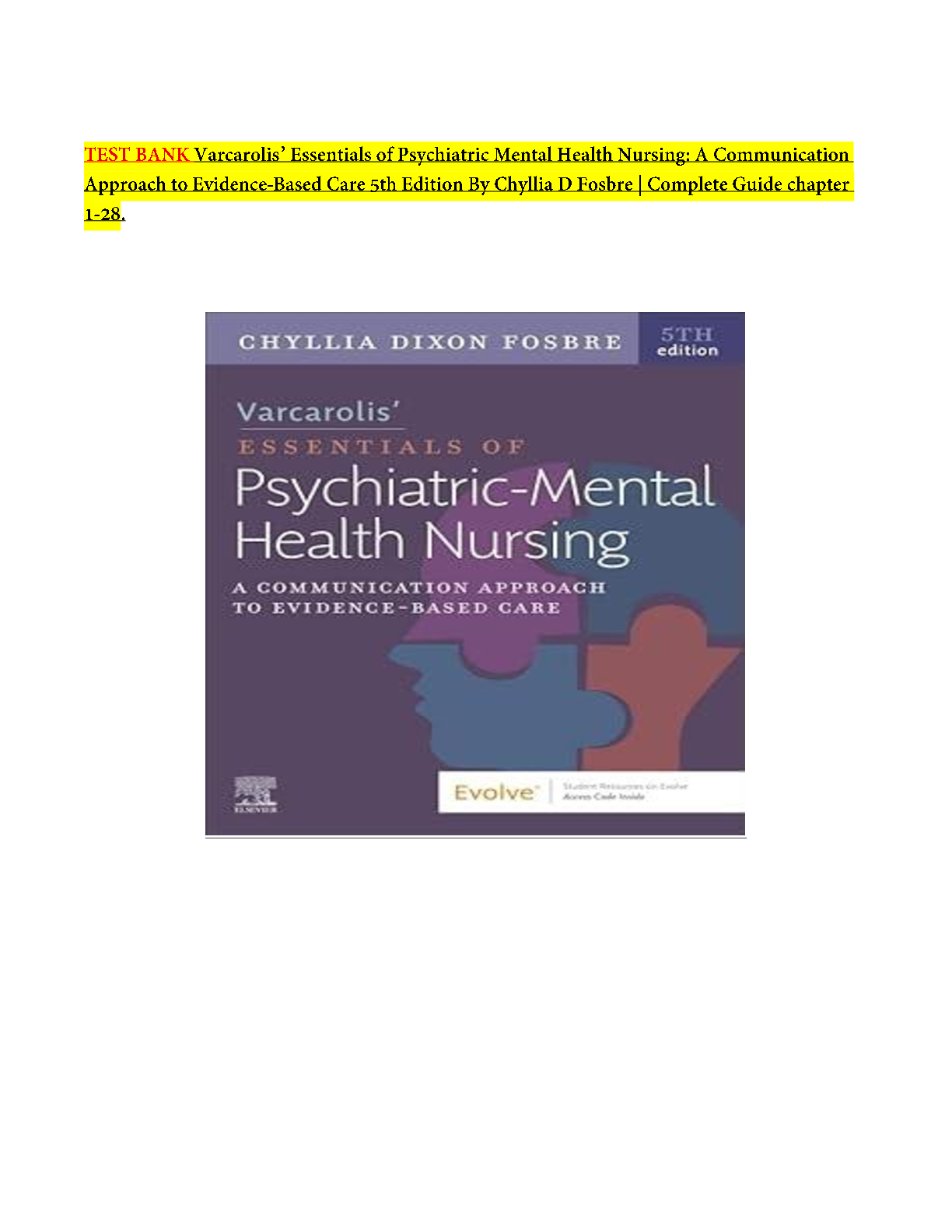 PSYCHIATRIC MENTAL HEALTH NURSING > EXAM > TEST BANK Varcarolis’ Essentials of Psychiatric Mental Health Nursing: A Communication Approach to Evidence-Based Care 5th Edition By Chyllia D Fosbre | Complete Guide chapter 1-28. (All)