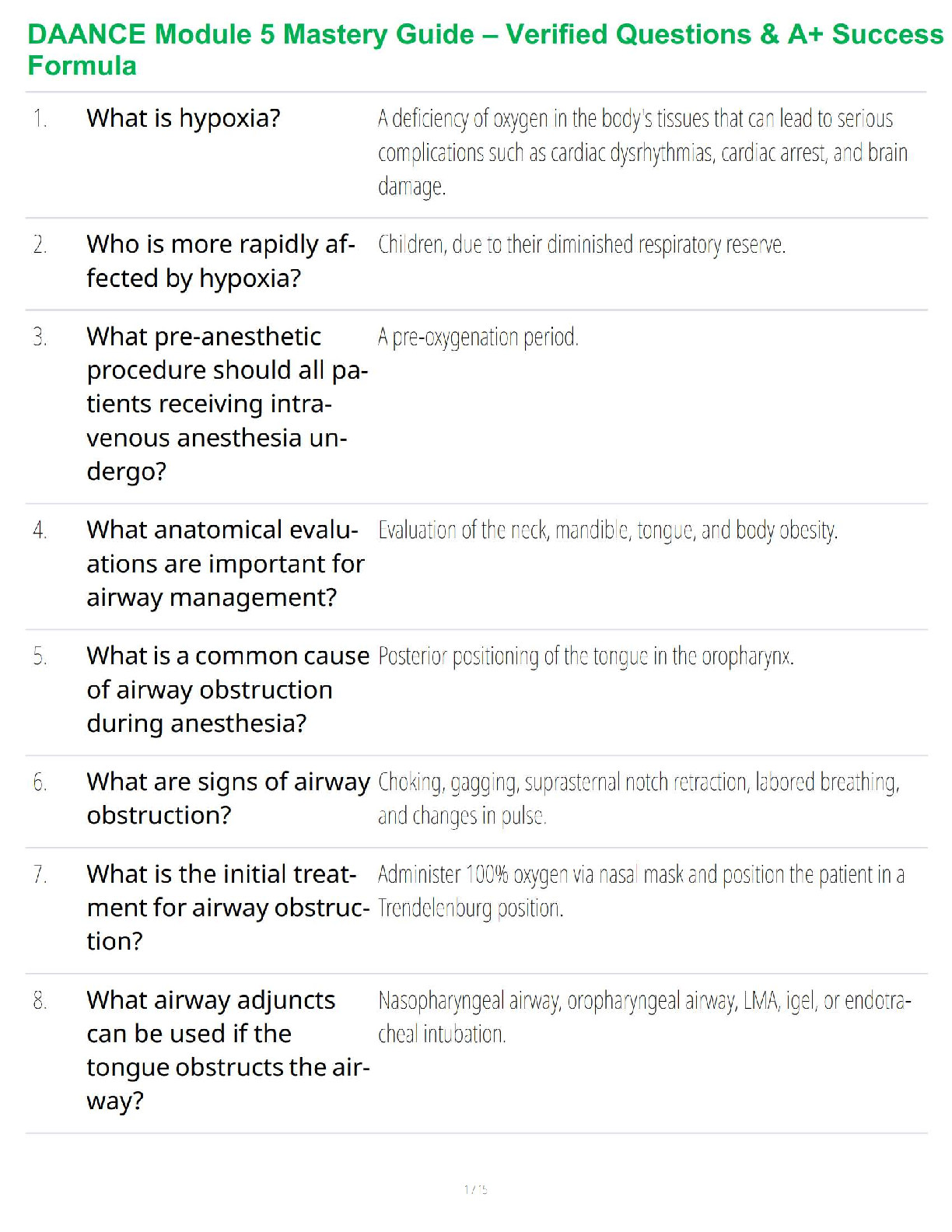 MN DENTAL > QUESTIONS & ANSWERS > Dental Anesthesia Assistant National Certification Examination (DAANCE) – Module 2 Study Guide with Verified Questions & A+ Guaranteed Success (All)