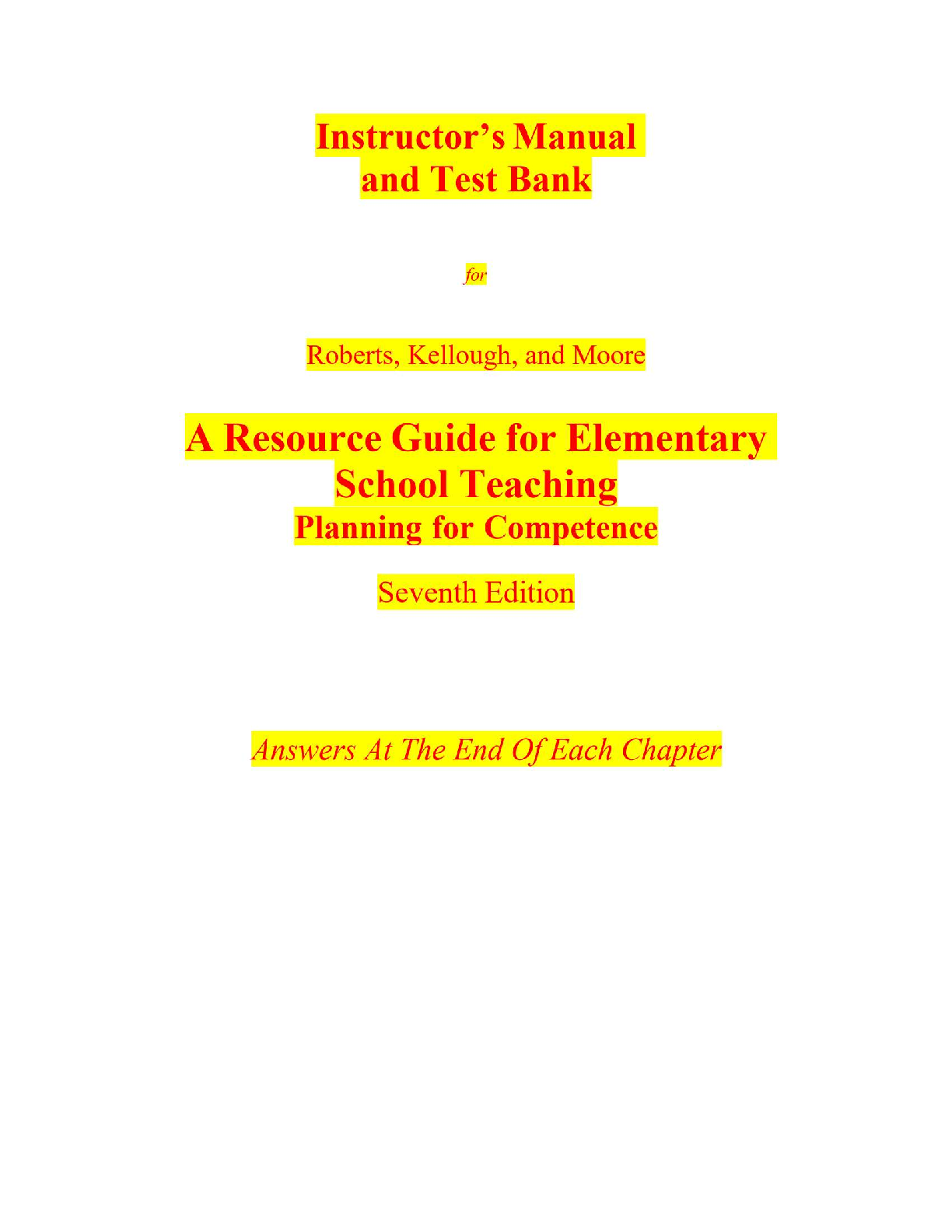 Professional Teaching Knowledge > TEST BANKS > Solution Manual and test bank for Roberts Kellough and Moore A Resource Guide for Elementary School Teaching Planning for Competence 7th Edition A+ (All)