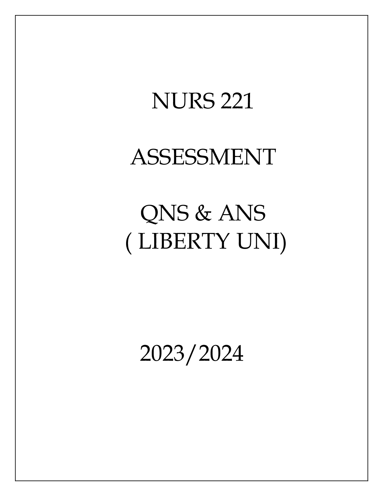 A321 KSV > EXAM > NURS 221 ASSESSMENT QNS & ANS ( LIBERTY UNI ) 2023 (All)