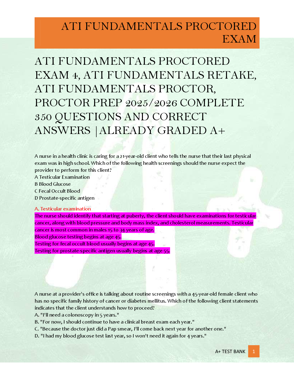 A321 KSV > EXAM > ATI FUNDAMENTALS PROCTORED EXAM 4, ATI FUNDAMENTALS RETAKE, ATI FUNDAMENTALS PROCTOR, PROCTOR PREP 2025/2026 COMPLETE 350 QUESTIONS AND CORRECT ANSWERS |ALREADY GRADED A+ (All)