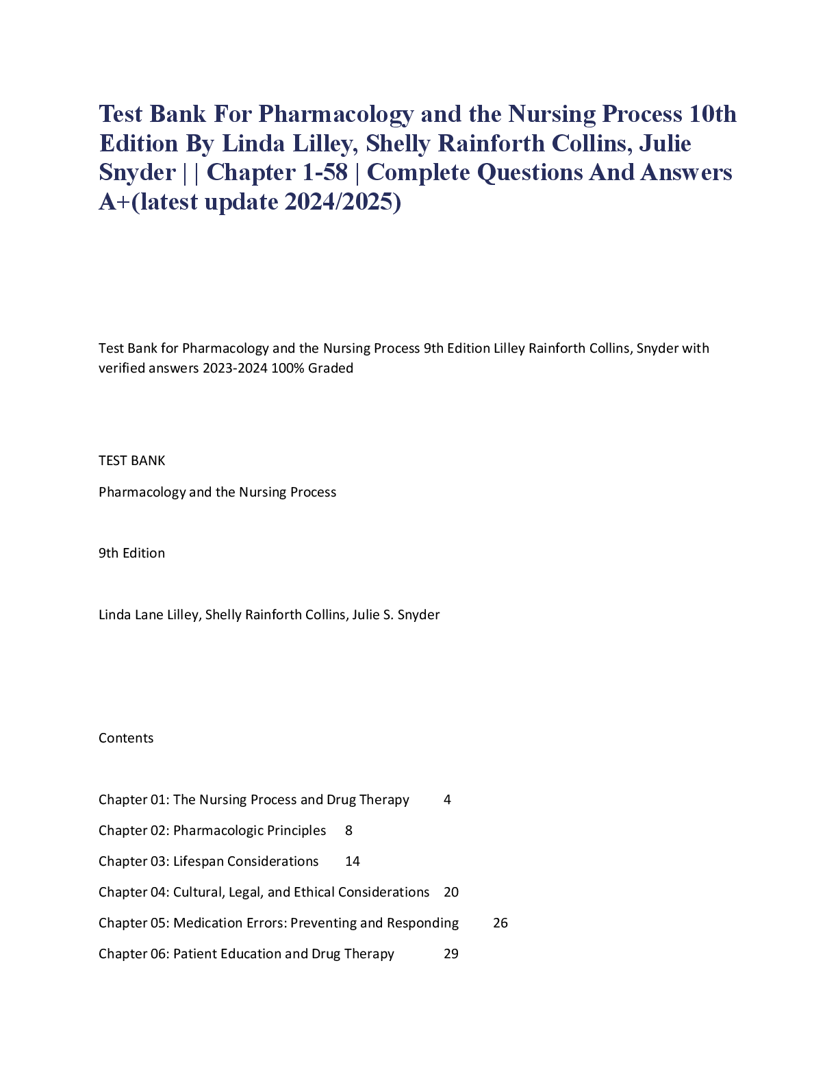 Pharmacology for Nursing Care > TEST BANKS > Test Bank for Pharmacology and the Nursing Process 10E by Linda L. Lilley, Shelly R. Collins, Julie S. Snyder. All Chapters (1-58) (All)