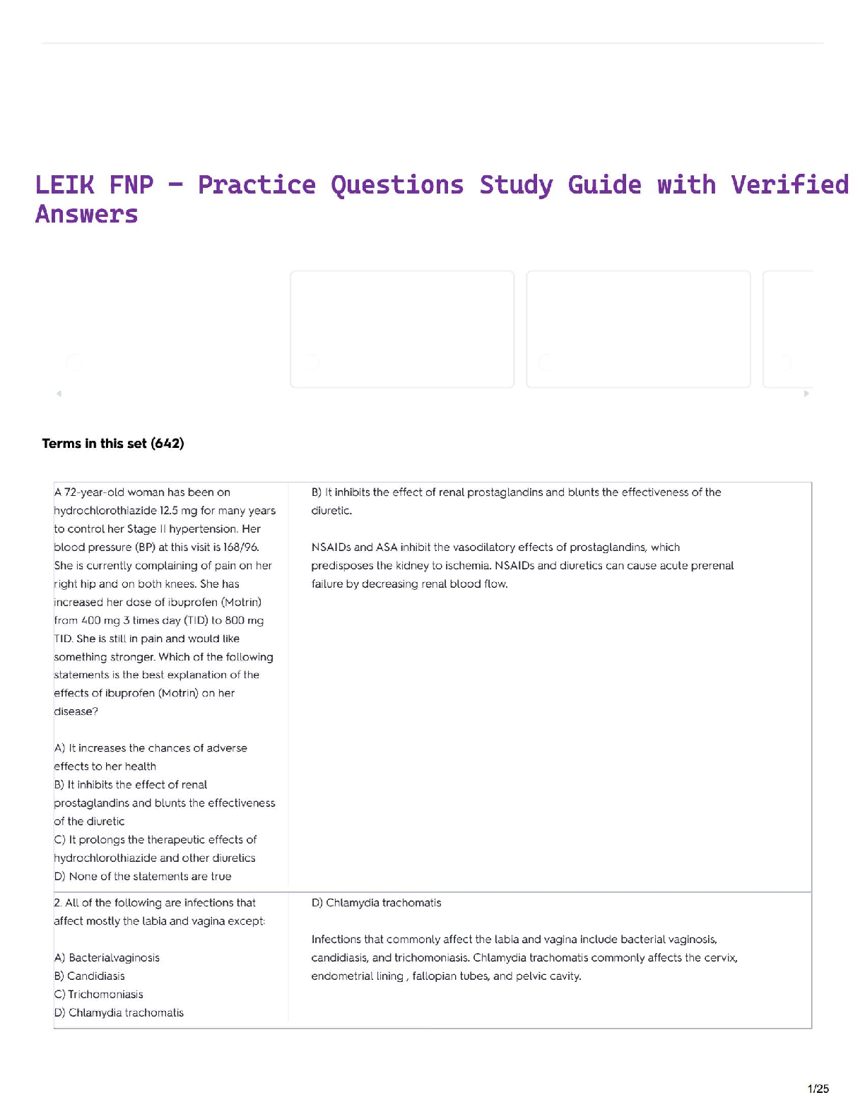 FNP > STUDY GUIDE > LEIK FNP – Practice Questions Study Guide with Verified Answers (All)