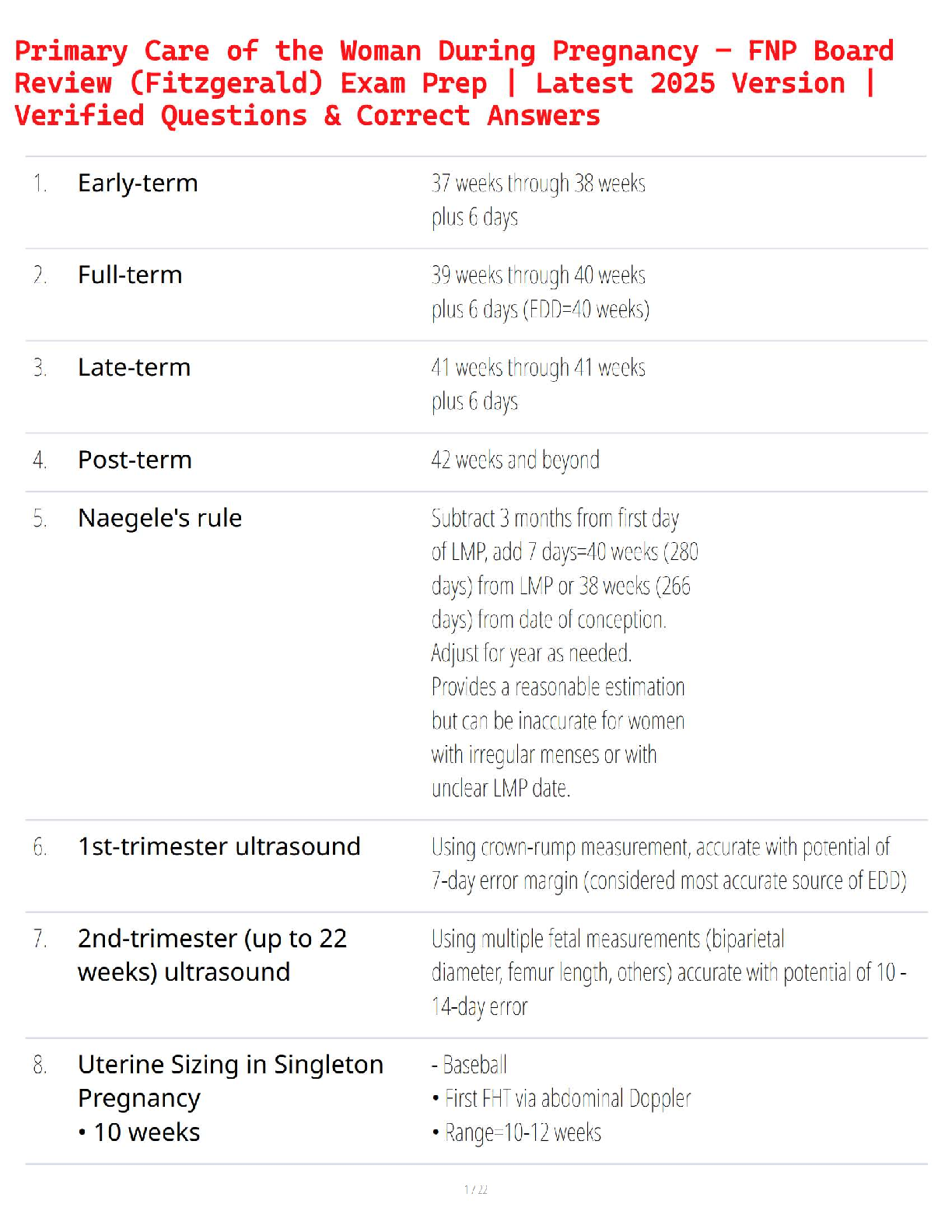 FNP > QUESTIONS & ANSWERS > Primary Care of the Woman During Pregnancy – FNP Board Review (Fitzgerald) Exam Prep | Latest 2025 Version | Verified Questions & Correct Answers (All)