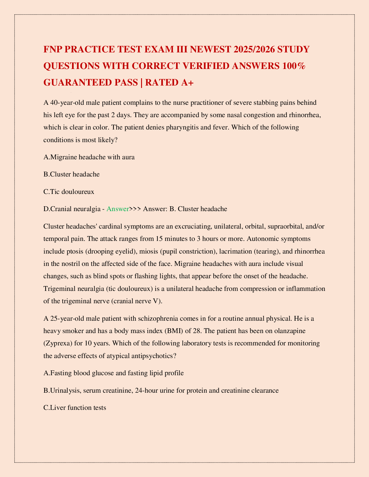 FNP > EXAMs > FNP PRACTICE TEST EXAM III NEWEST 2025/2026 STUDY QUESTIONS WITH CORRECT VERIFIED ANSWERS 100% GUARANTEED PASS | RATED A+ (All)