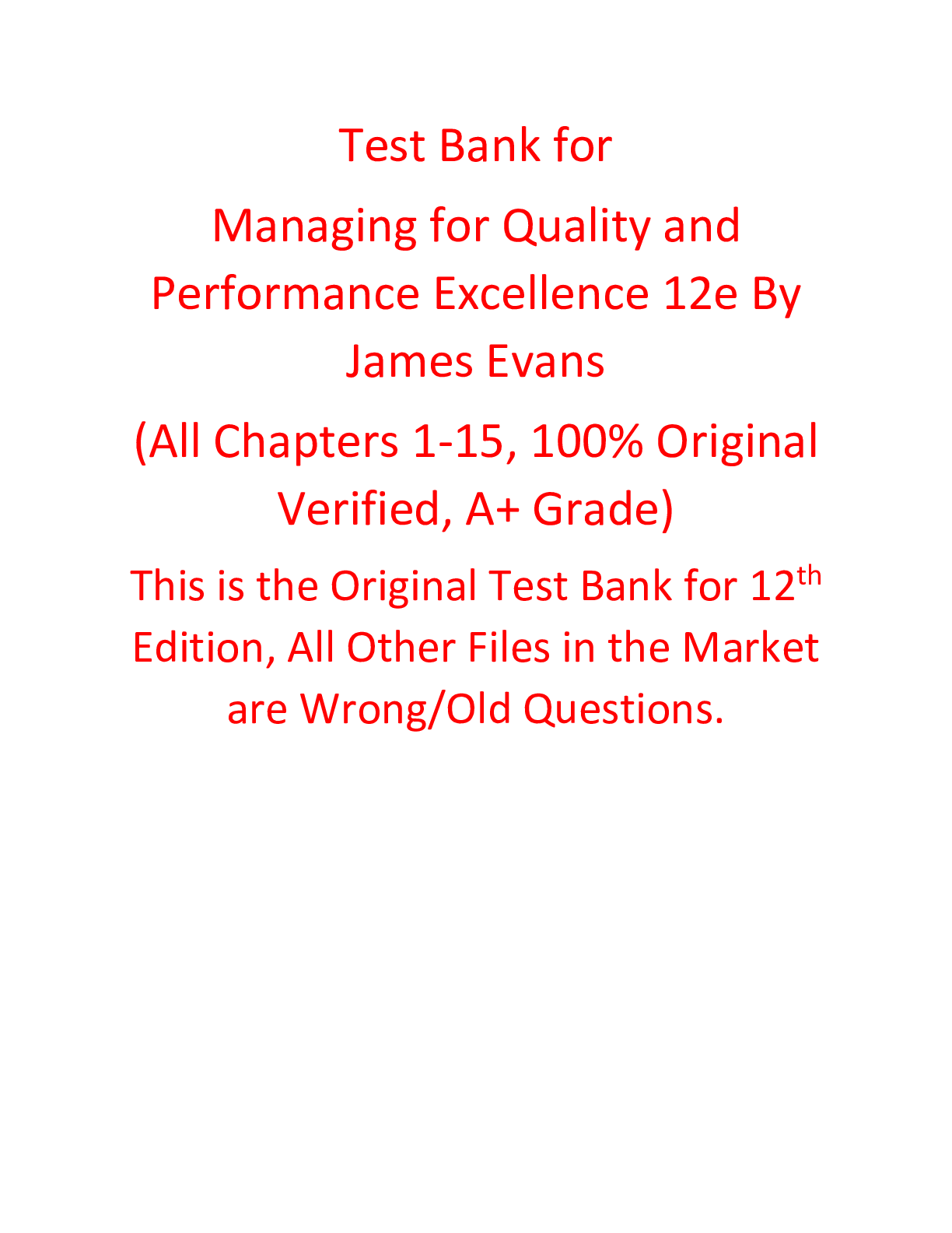 Acturial Science > TEST BANKS > Test Bank for Managing for Quality and Performance Excellence 12th Edition By James Evans (All Chapters, 100% Original Verified, A+ Grade) (All)