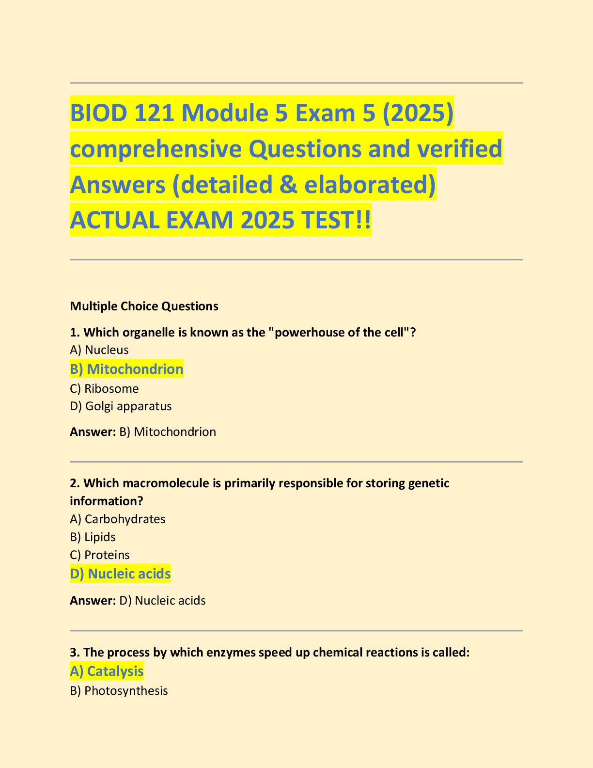 BIOD 121 > EXAM > BIOD 121 Module 5 Exam 5 (2025) comprehensive Questions and verified Answers (detailed & elaborated) ACTUAL EXAM 2025 TEST!! (All)