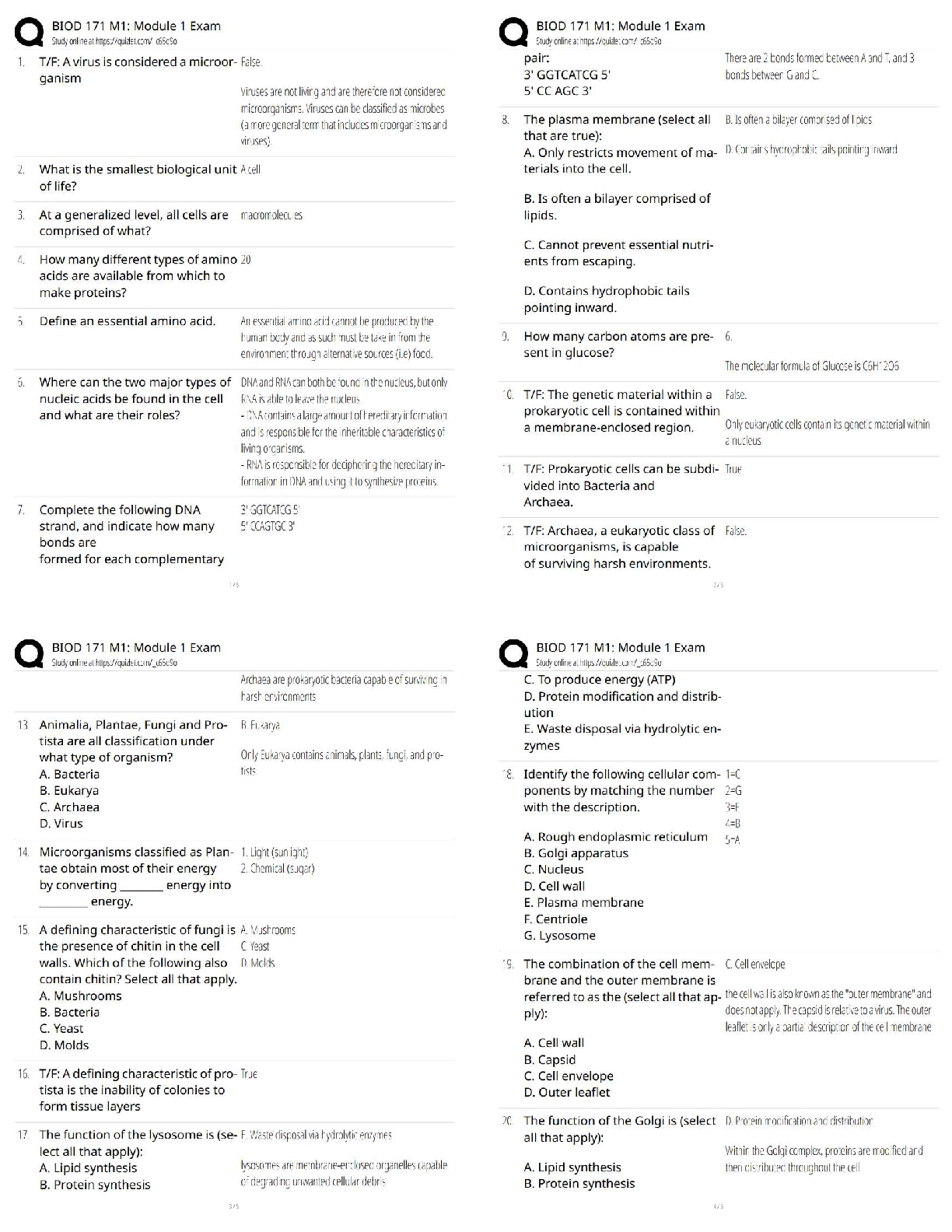 BIOD 121 > QUESTIONS & ANSWERS > BIOD 171 M1 Module 1 Exam / Score 100% / New Version / 2025 Update / Study Guide & Test Bank (All)