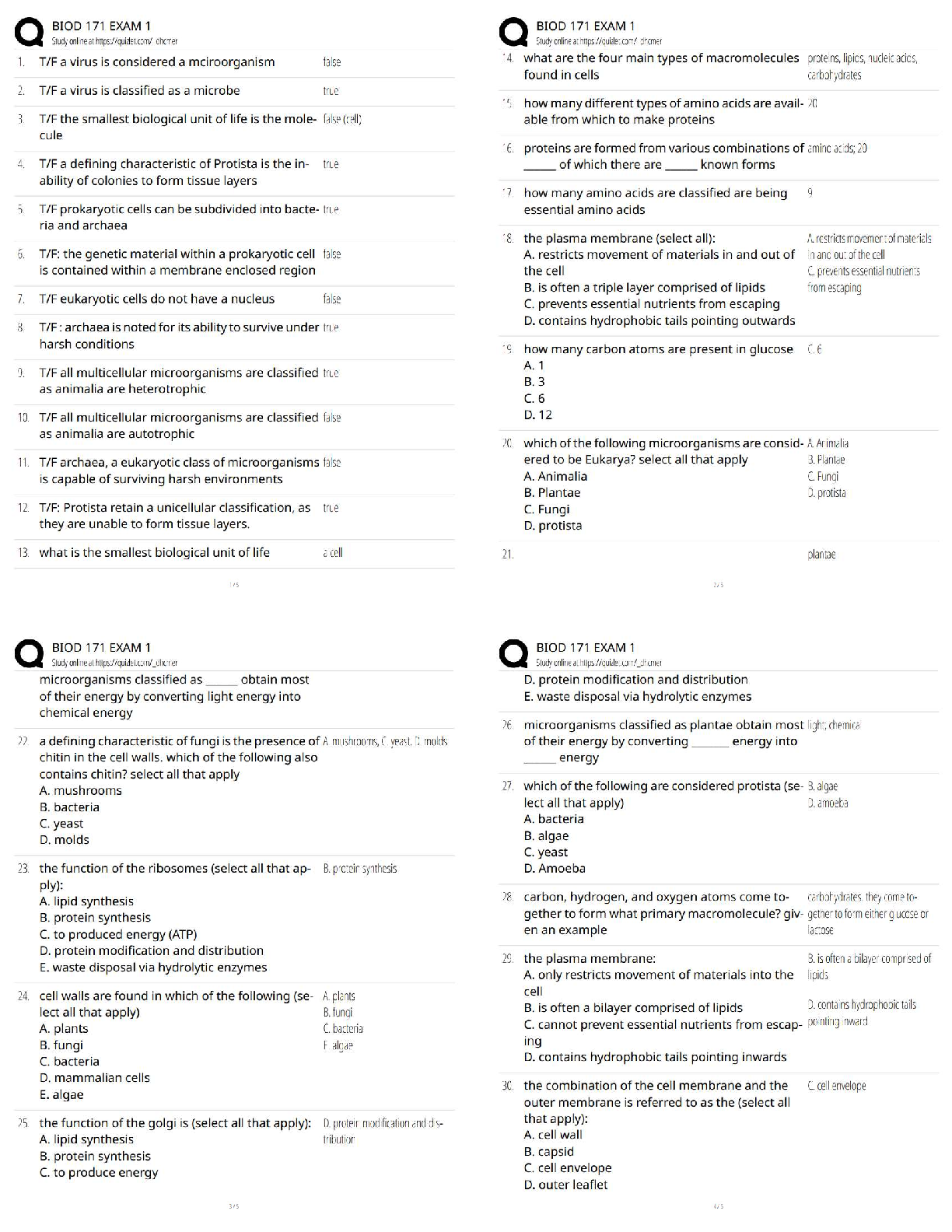 BIOD 121 > QUESTIONS & ANSWERS > BIOD 171 M1 Module 1 Exam / Score 100% / New Version / 2025 Update / Study Guide & Test Bank (All)