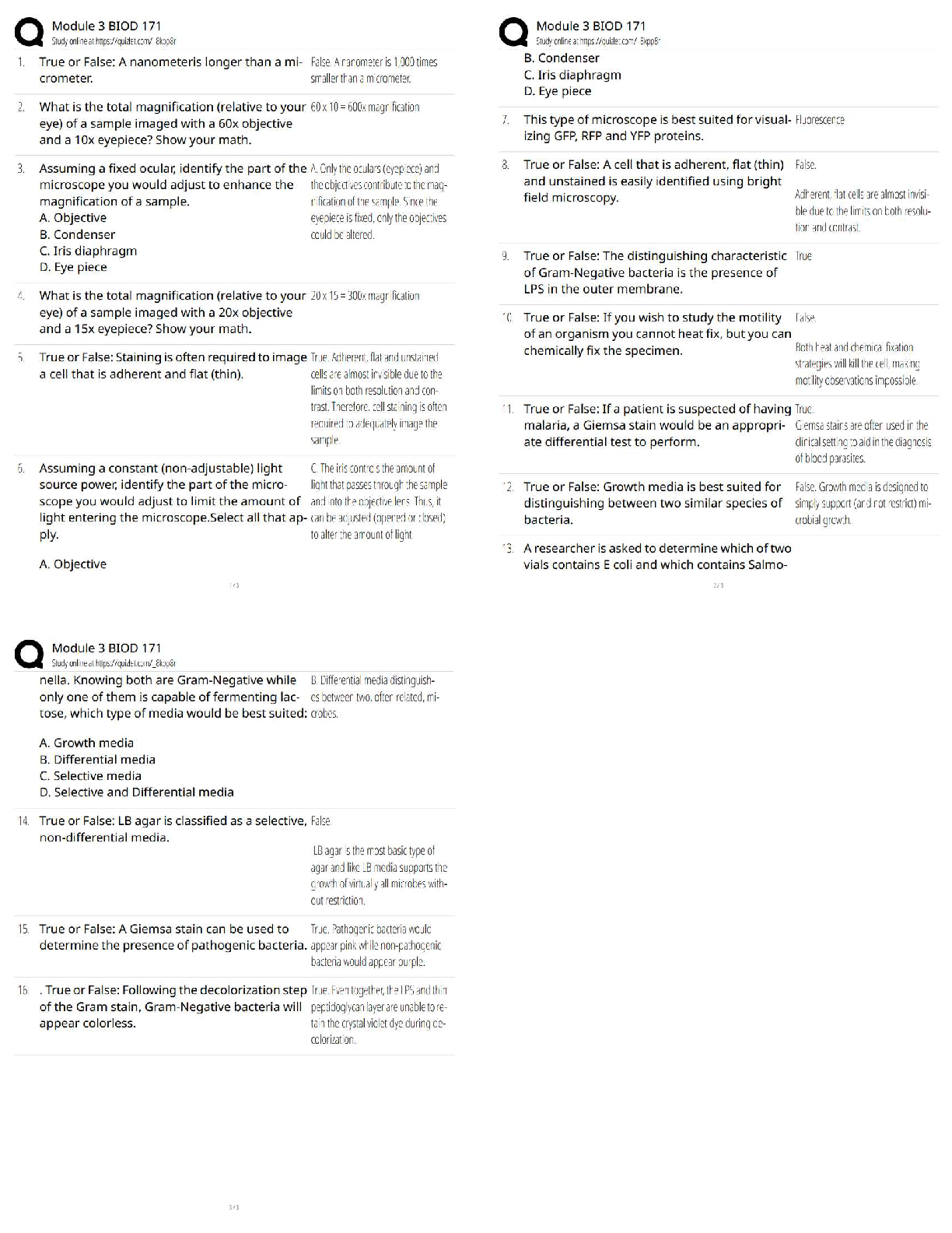 BIOD 121 > QUESTIONS & ANSWERS > BIOD 171 Module 3 / Score 100% / New Version / 2025 Update / Study Guide & Test Bank (All)