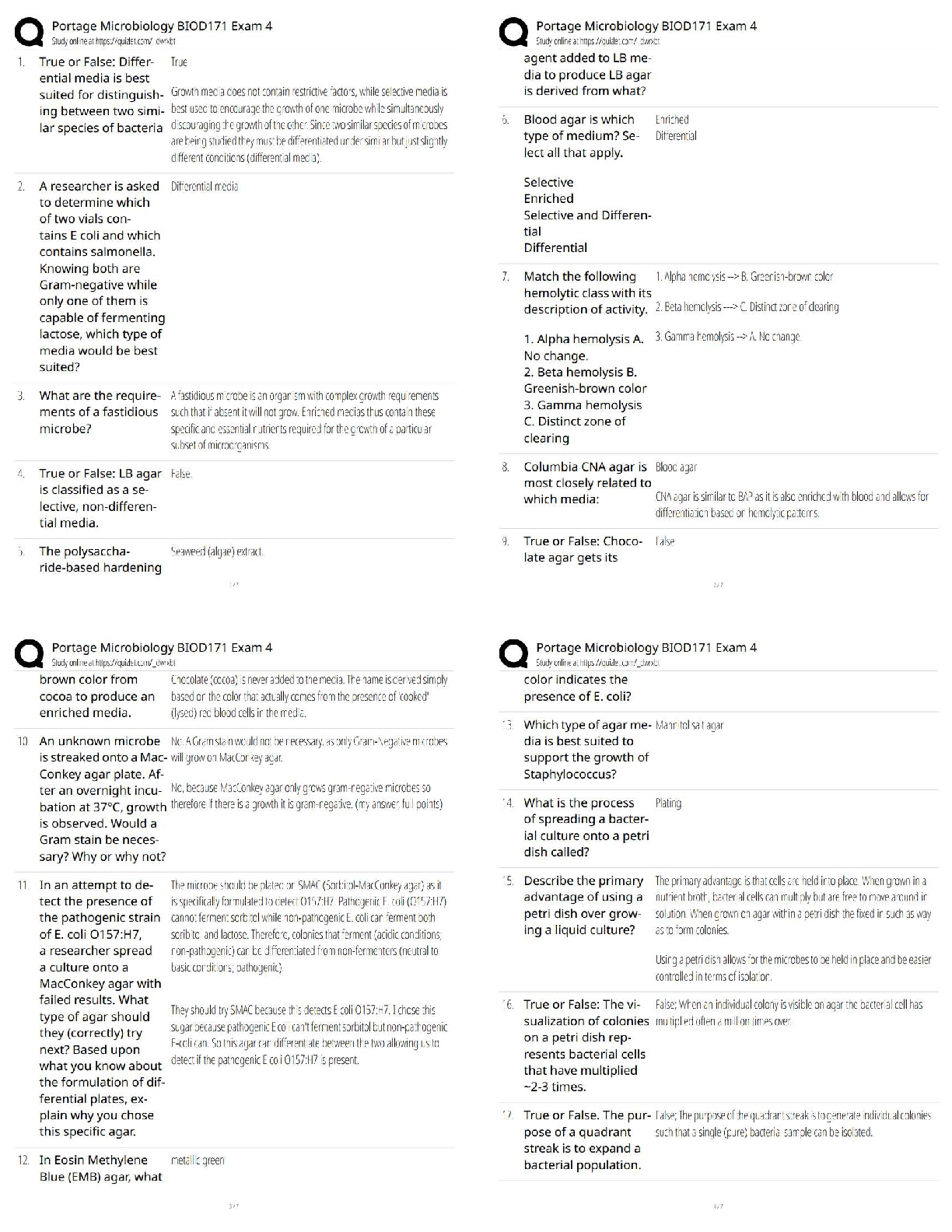 BIOD 121 > QUESTIONS & ANSWERS > Portage Microbiology BIOD 171 Exam 4 / Score 100% / New Version / 2025 Update / Study Guide & Test Bank (All)