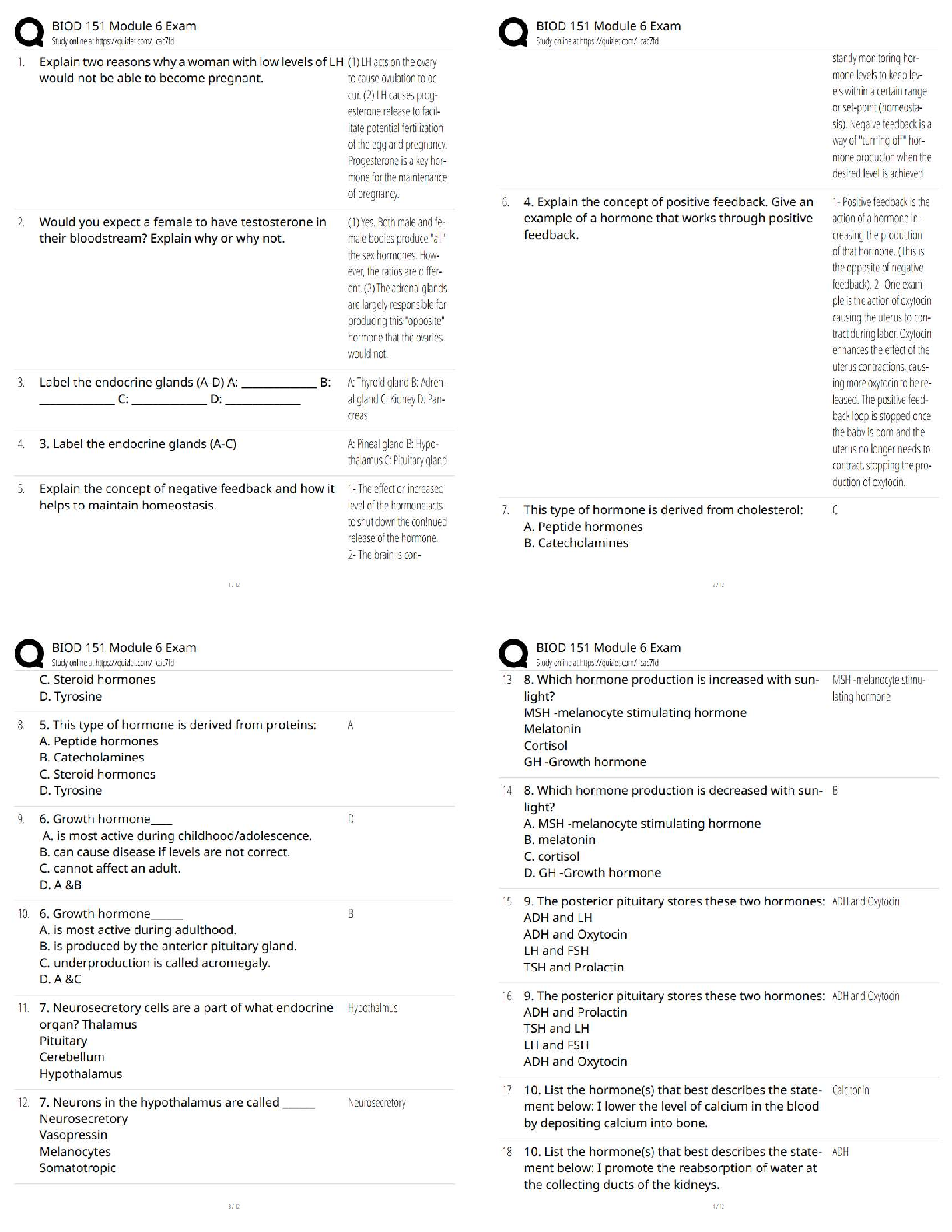 BIOD 121 > QUESTIONS & ANSWERS > BIOD 151 Module 6 Exam / Score 100% / New Version / 2025 Update / Study Guide & Test Bank (All)