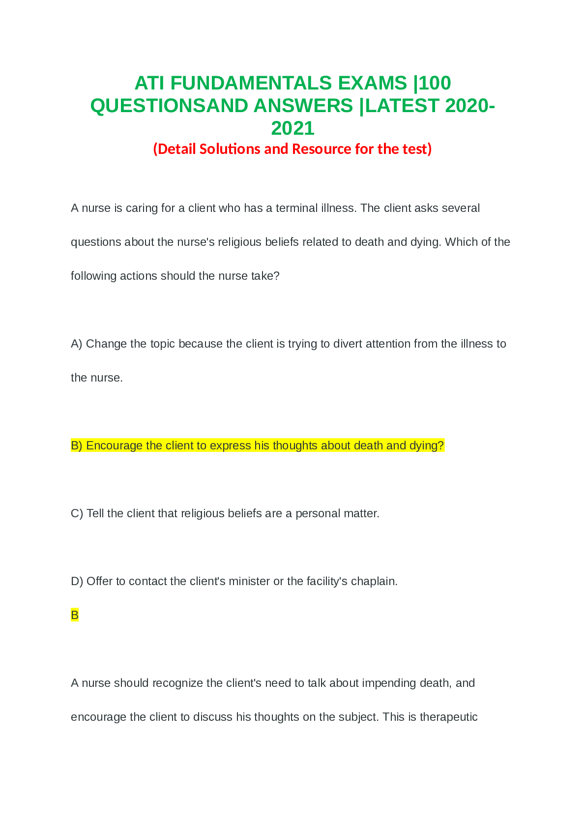 ati fundamentals > EXAM > ATI FUNDAMENTALS REMEDIATION ACTUAL EXAM COMPLETE REAL EXAM QUESTIONS AND CORRECT DETAILED ANSWERS (VERIFIED SOLUTIONS) LATEST UPDATES GUARANTEED PASS (BRAND NEW) (All)