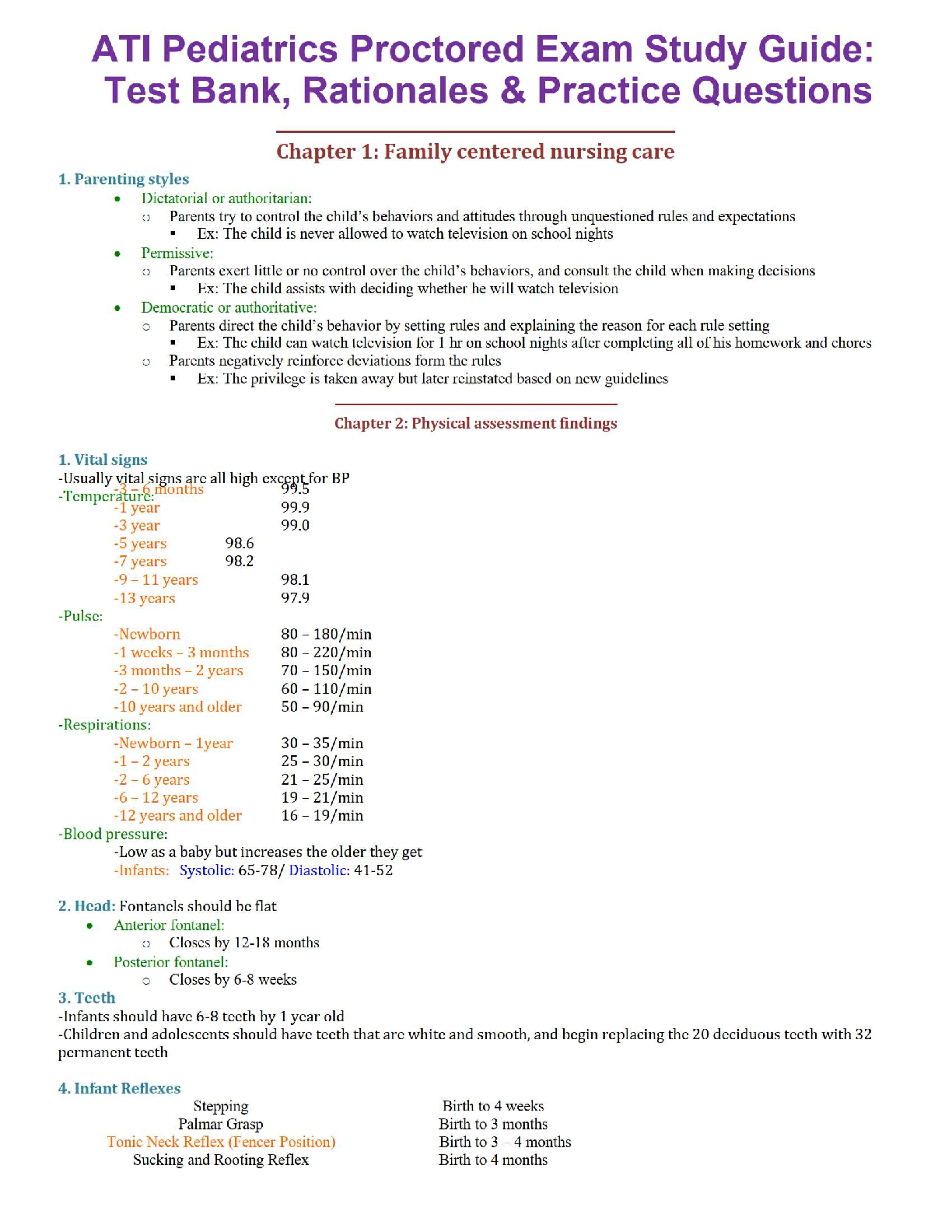 ati fundamentals > EXAM > 🍼 ATI Pediatrics Proctored Exam Study Guide: Test Bank, Rationales & Practice Questions 🍼 (All)