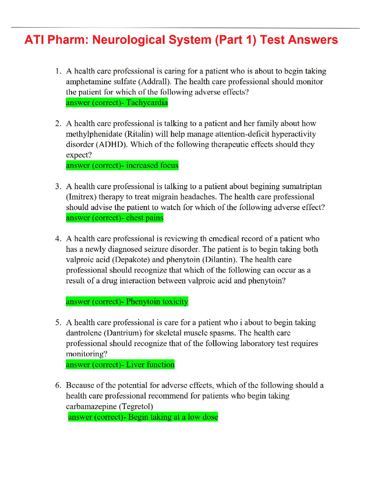 ati fundamentals > STUDY GUIDE > ATI Pharm: Neurological System (Part 1) Test Answers (All)