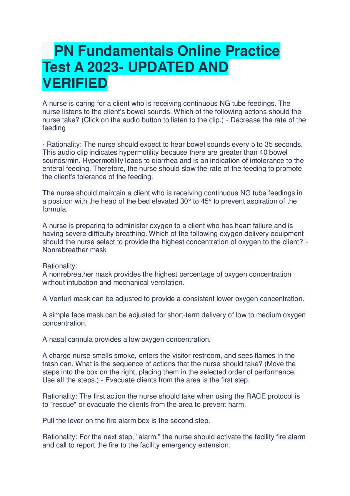 ati fundamentals > STUDY GUIDE > PN Fundamentals Online Practice Test A 2023- UPDATED AND VERIFIED (All)