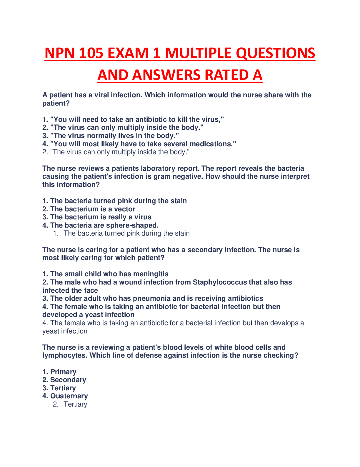 NPN > EXAM > NPN 105 EXAM 1 MULTIPLE QUESTIONS AND ANSWERS RATED A (All)