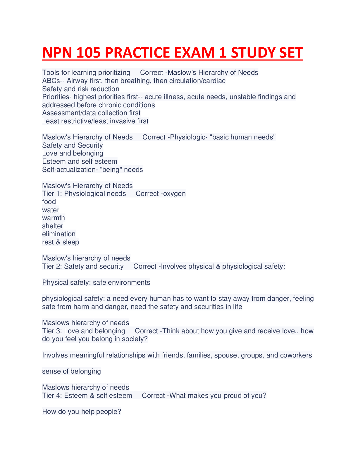 NPN 105 > EXAM > NPN 105 EXAM 3 QUESTIONS AND ANSWERS RATED A. (All)