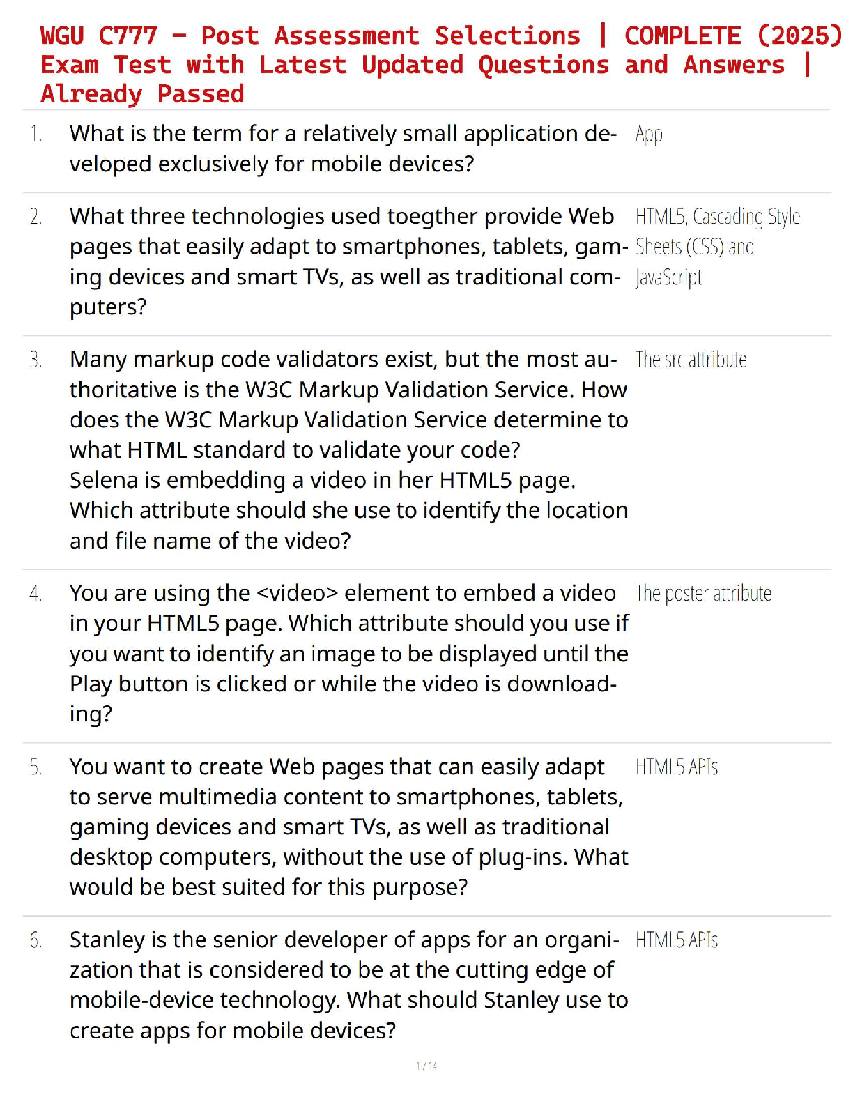 Capstone Exam > EXAM > WGU C777 – Post Assessment Selections | COMPLETE (2025) Exam Test with Latest Updated Questions and Answers | Already Passed (All)