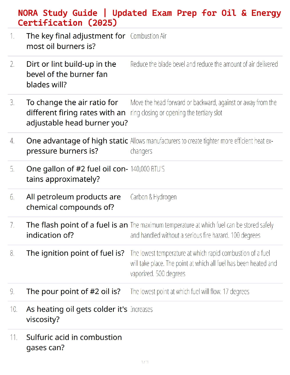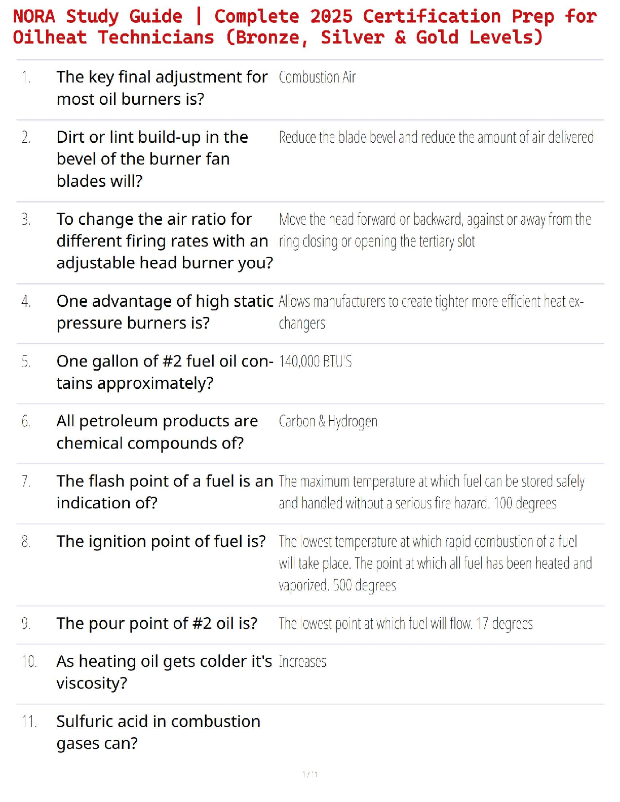 Capstone Exam > STUDY GUIDE > NORA Study Guide | Complete 2025 Certification Prep for Oilheat Technicians (Bronze, Silver & Gold Levels) (All)