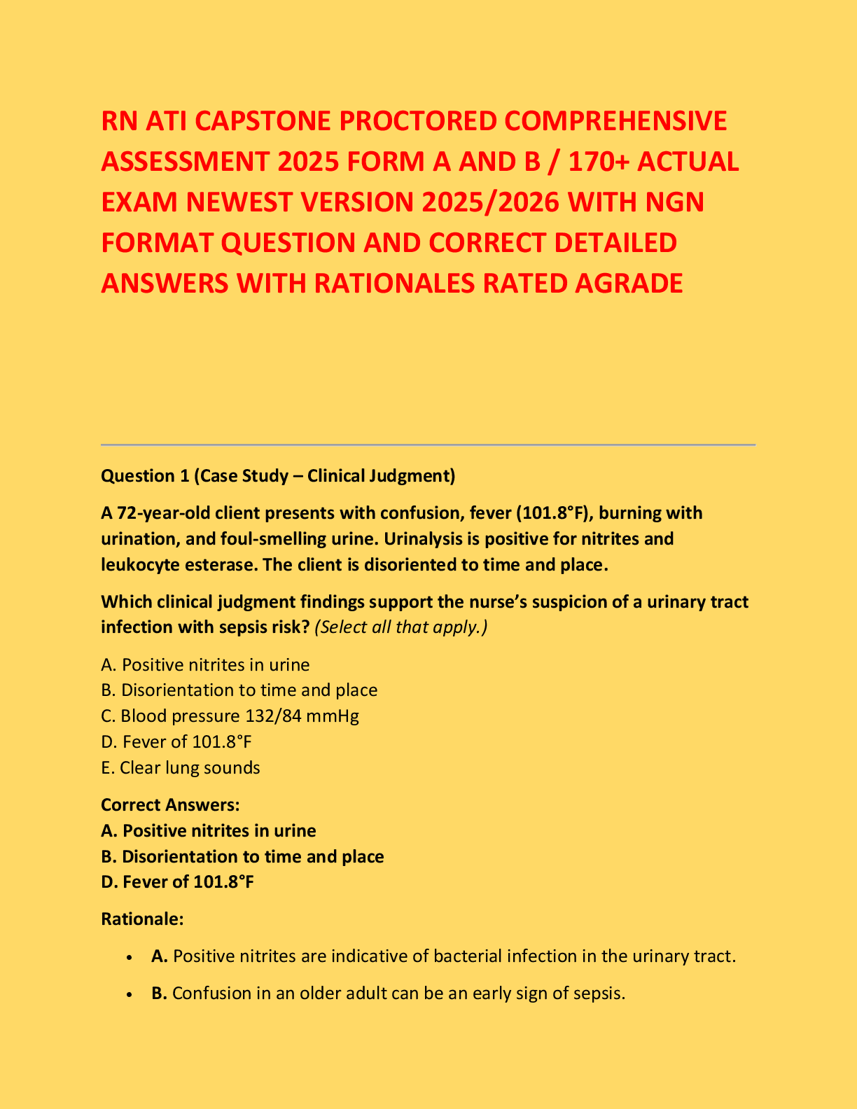 Capstone Exam > EXAM > RN ATI CAPSTONE PROCTORED COMPREHENSIVE ASSESSMENT 2025 FORM A AND B / 170+ ACTUAL EXAM NEWEST VERSION 2025/2026 WITH NGN FORMAT QUESTION AND CORRECT DETAILED ANSWERS WITH RATIONALES RATED AGRADE (All)