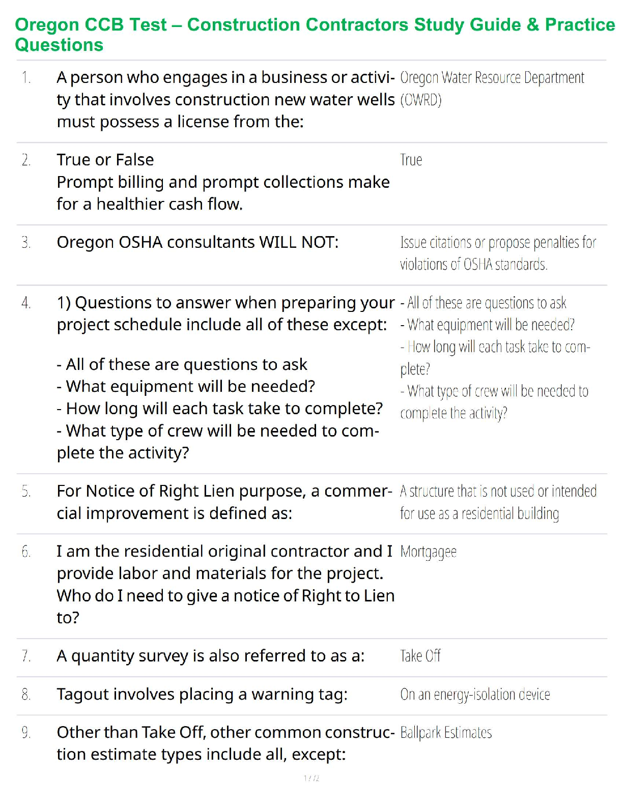 Civil Engineering > STUDY GUIDE > Oregon CCB Test – Construction Contractors Study Guide & Practice Questions (All)
