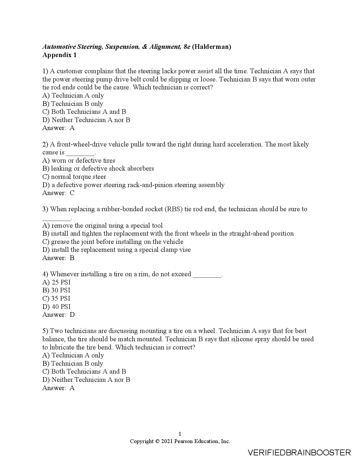 Civil Engineering > TEST BANKS > Test Bank For Automotive Steering, Suspension & Alignment, 8th Edition By James Halderman All Chapters 1-21 + Appendix (All)