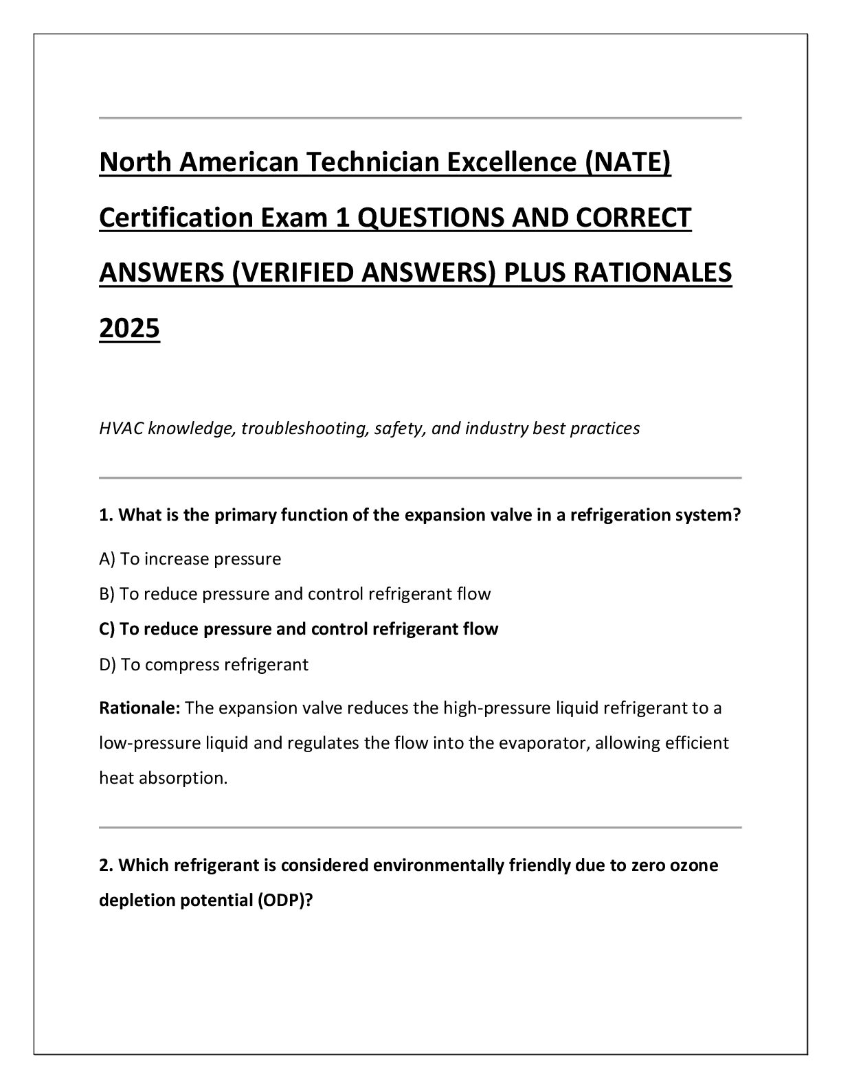 NATE Gas Heating Exam > EXAM > North American Technician Excellence (NATE) Certification Exam 1 QUESTIONS AND CORRECT ANSWERS (VERIFIED ANSWERS) PLUS RATIONALES 2025 (All)