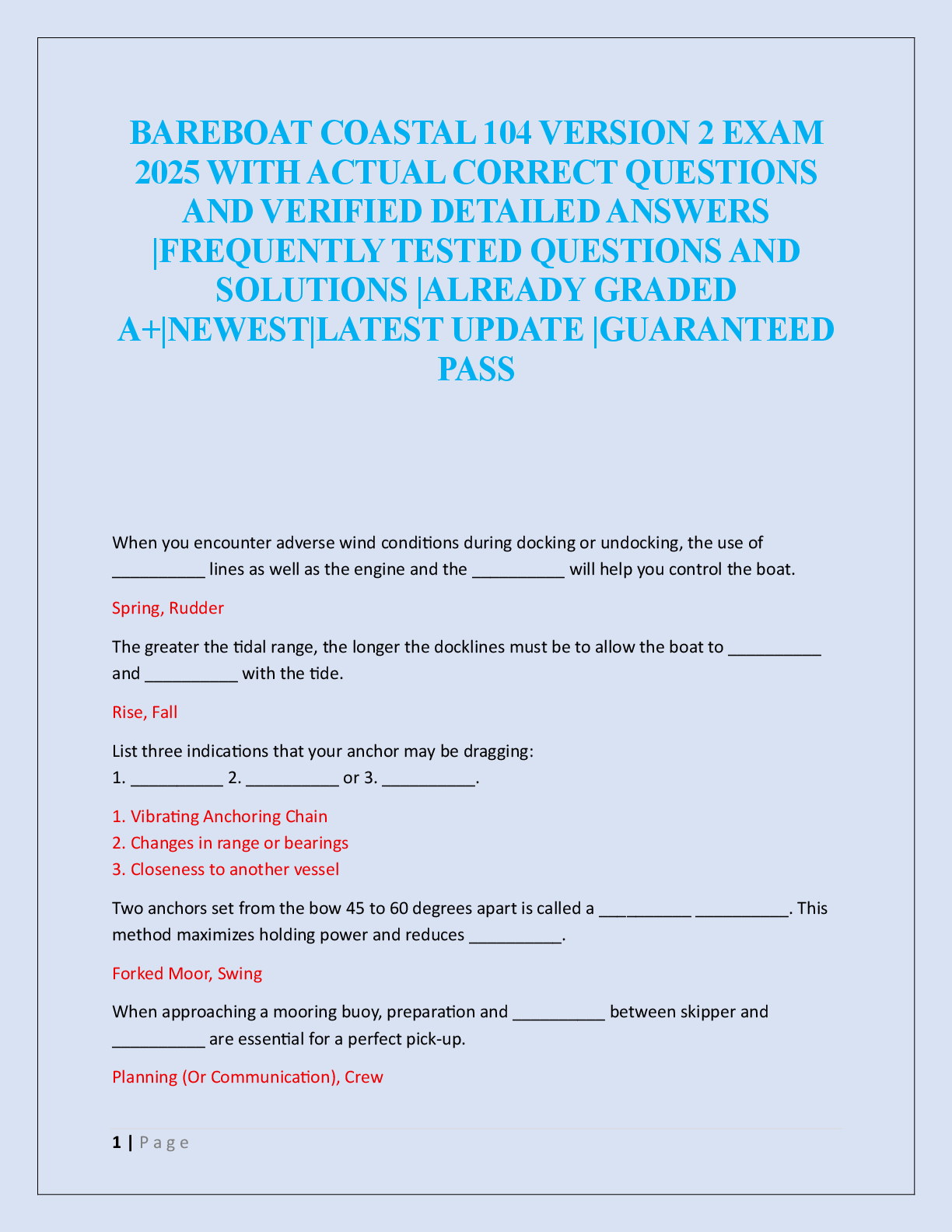 Boat Ed > EXAM > BAREBOAT COASTAL 104 VERSION 2 EXAM 2025 (All)