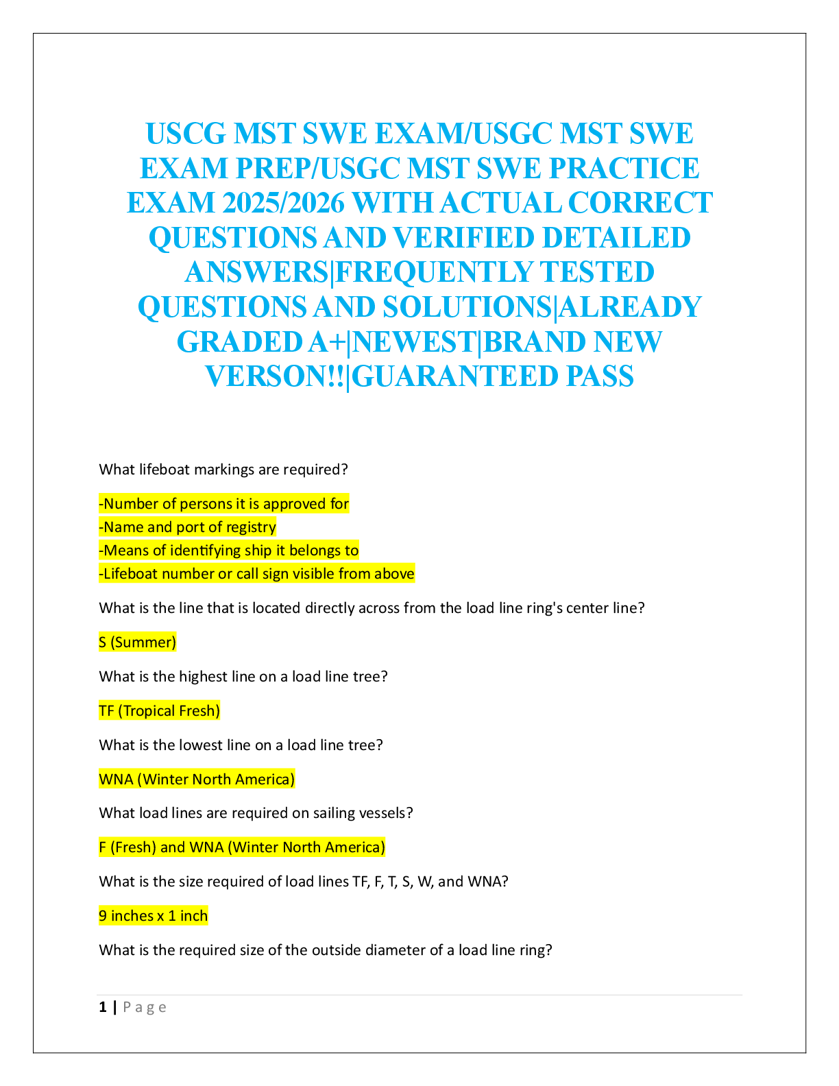 Boat Ed > EXAMs > USCG MST SWE EXAM/USGC MST SWE EXAM PREP/USGC MST SWE PRACTICE EXAM (All)