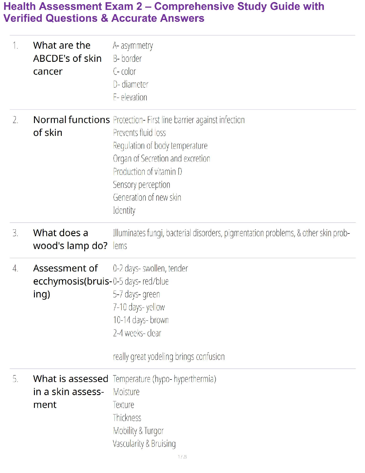 Physical Examination and Health Assessment, 8th Edition > EXAM > Health Assessment Exam 2 – Comprehensive Study Guide with Verified Questions & Accurate Answers (All)