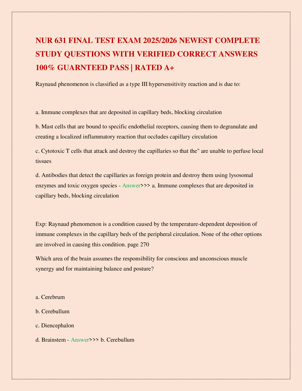 NURS611 > EXAM > NUR 631 FINAL TEST EXAM 2025/2026 NEWEST COMPLETE STUDY QUESTIONS WITH VERIFIED CORRECT ANSWERS 100% GUARNTEED PASS | RATED A+ (All)