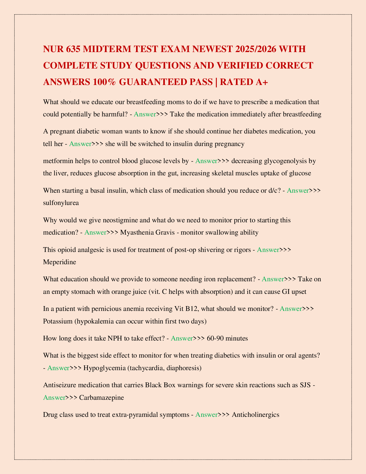 NURS611 > EXAM > NUR 635 MIDTERM TEST EXAM NEWEST 2025/2026 WITH COMPLETE STUDY QUESTIONS AND VERIFIED CORRECT ANSWERS 100% GUARANTEED PASS | RATED A+ (All)
